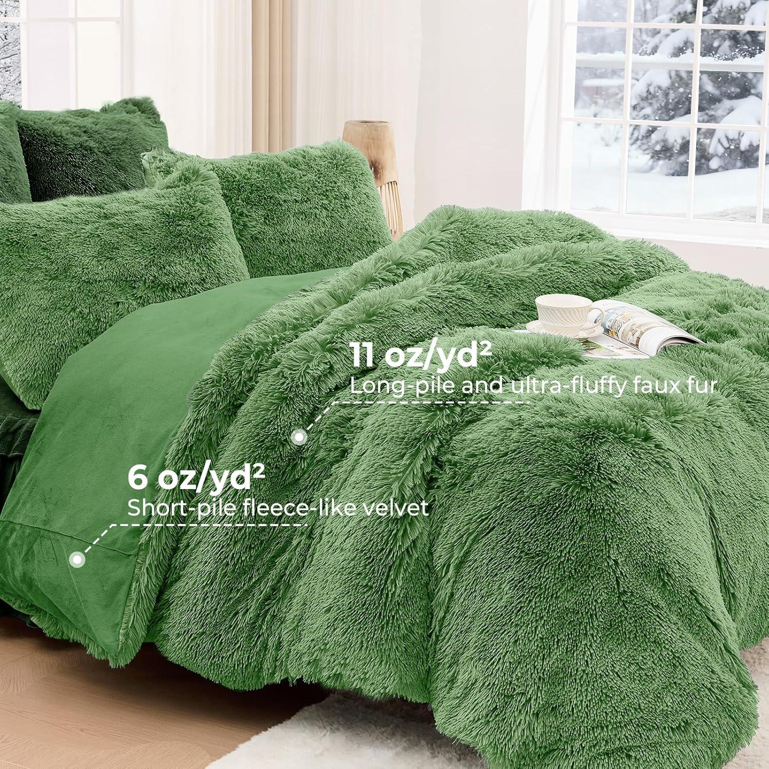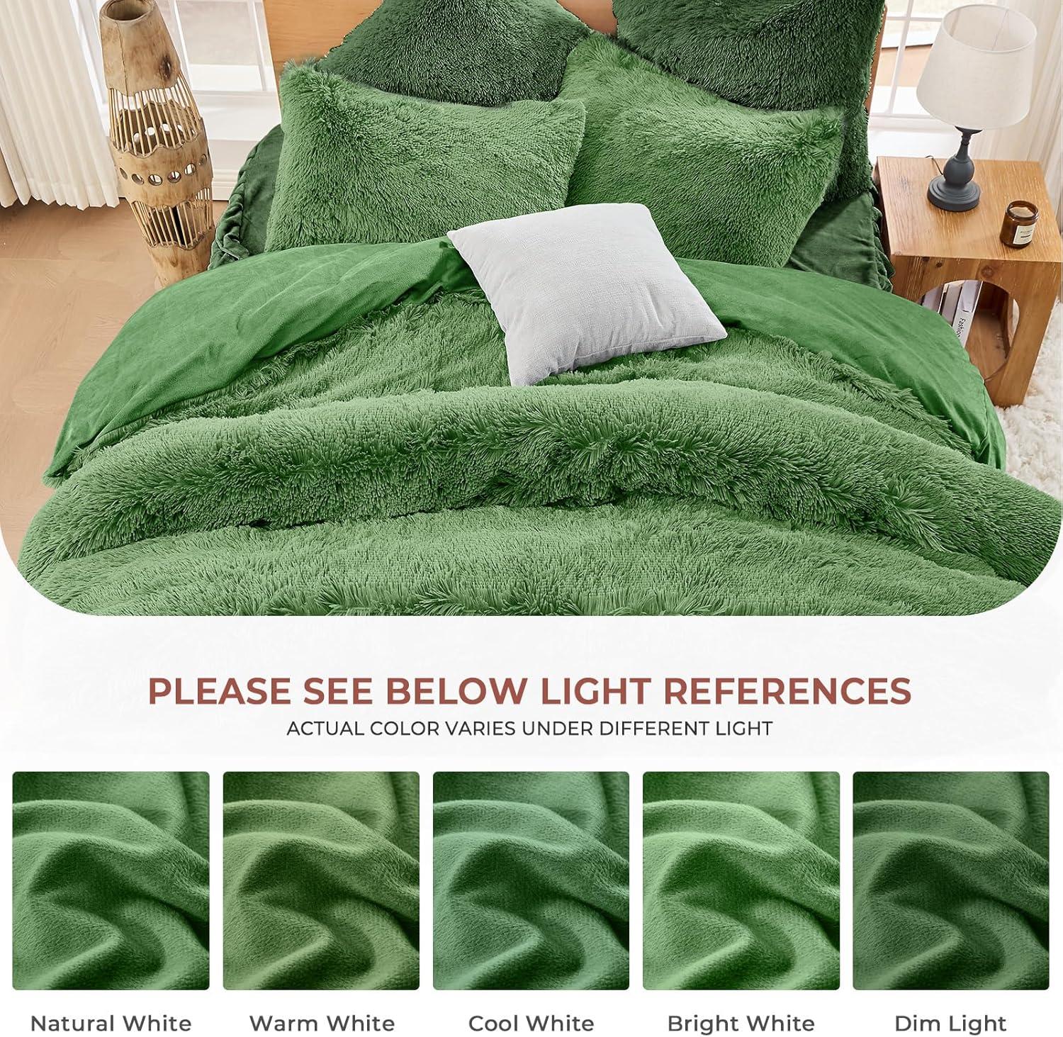 imageSasttie 3Piece Fluffy Duvet Cover Queen Ultra Soft Faux Fur and Velvet Beige Comforter Cover Luxury Fuzzy Bedding Sets for Winter Bed Includes 1 Duvet Cover and 2 Pillowcases No ComforterDusty Green