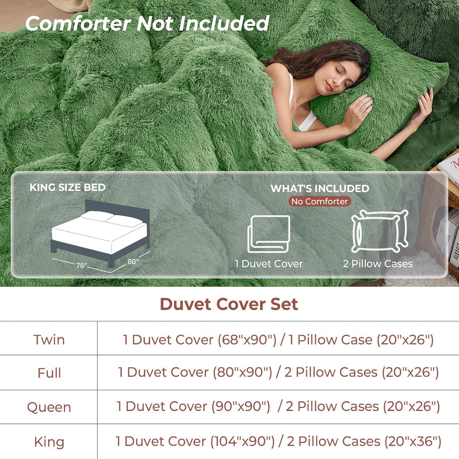 Sasttie 3-Piece Fluffy Duvet Cover Queen, Ultra Soft Faux Fur and Velvet Beige Comforter Cover, Luxury Fuzzy Bedding Sets for Winter Bed, Includes 1 Duvet Cover and 2 Pillowcases, No Comforter(Dusty Green)
