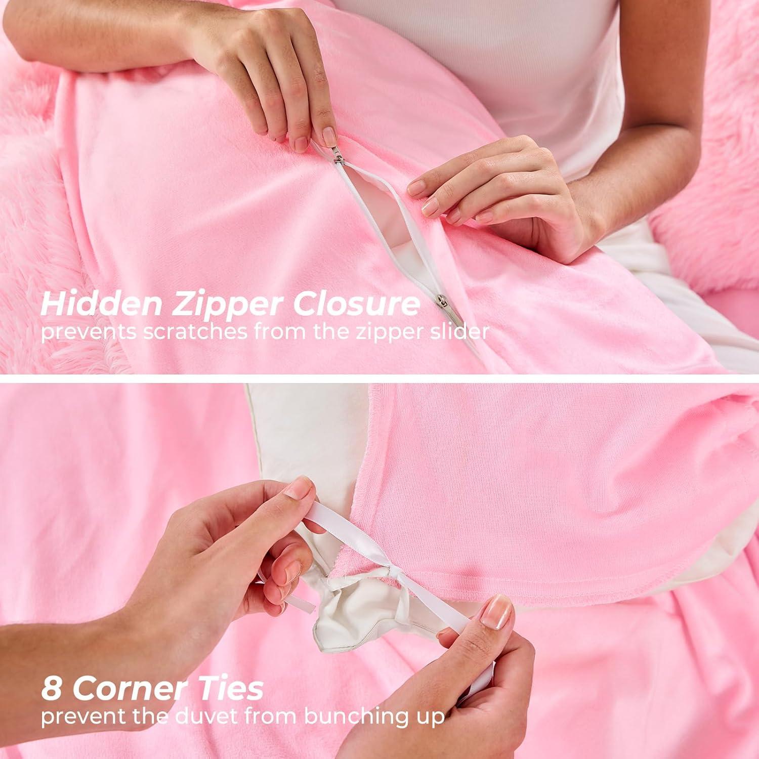 Sasttie 3-Piece Fluffy Duvet Cover Queen, Ultra Soft Faux Fur and Velvet Beige Comforter Cover, Luxury Fuzzy Bedding Sets for Winter Bed, Includes 1 Duvet Cover and 2 Pillowcases, No Comforter(Pink)