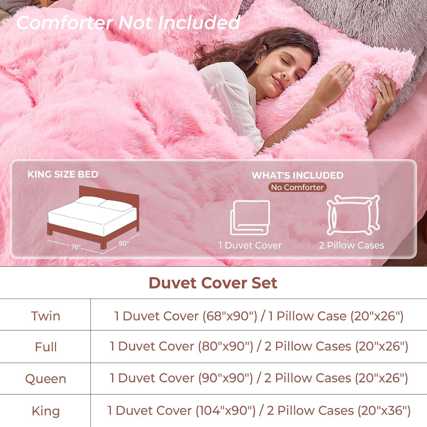 Fluffy & Soft Material: Crafted with 11 oz/yd² long-pile ultra-fluffy faux fur on the front and 6 oz/yd² short-pile fleece-like velvet on the back, this furry duvet cover queen delivers reversible comfort, a cloud-like feel, and superior warmth for cold nights