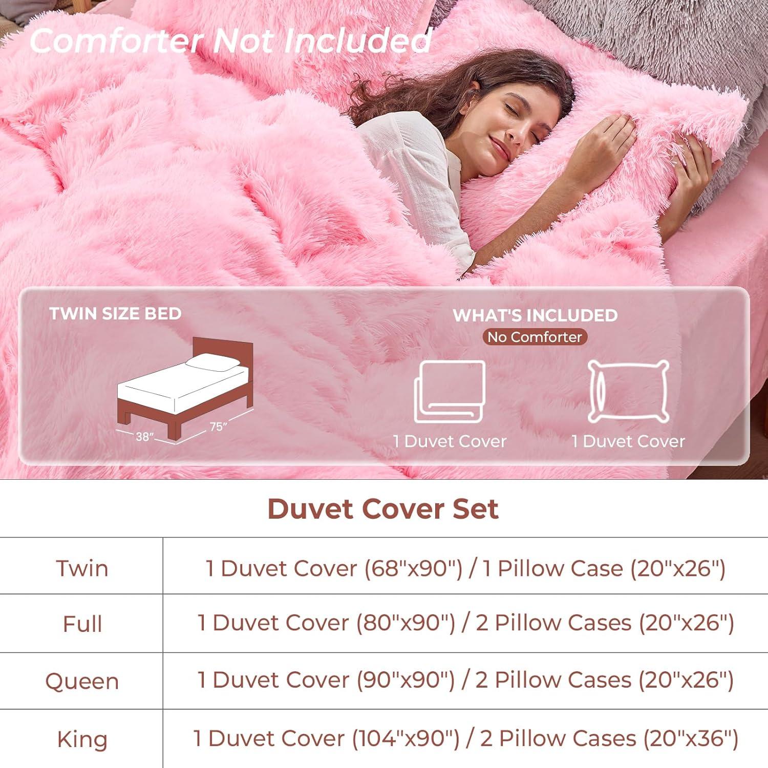 imageSasttie 3Piece Fluffy Duvet Cover Queen Ultra Soft Faux Fur and Velvet Beige Comforter Cover Luxury Fuzzy Bedding Sets for Winter Bed Includes 1 Duvet Cover and 2 Pillowcases No ComforterPink