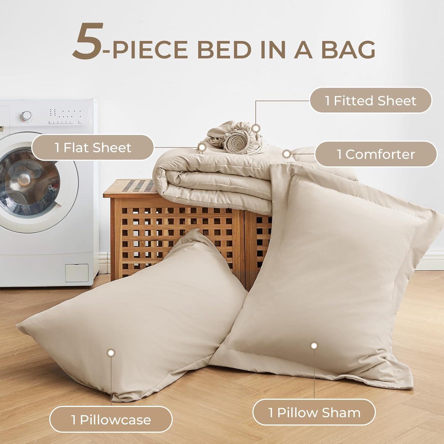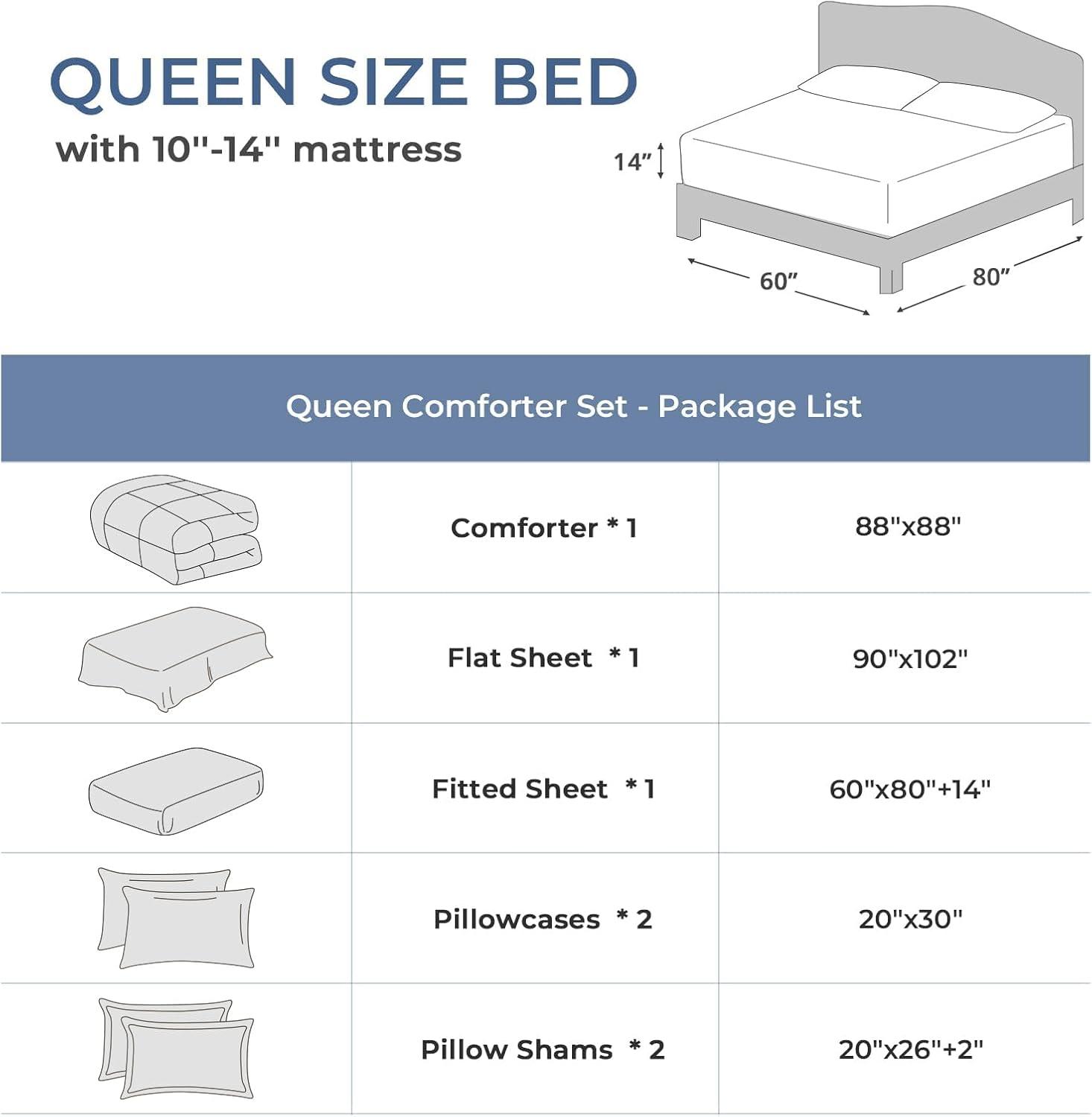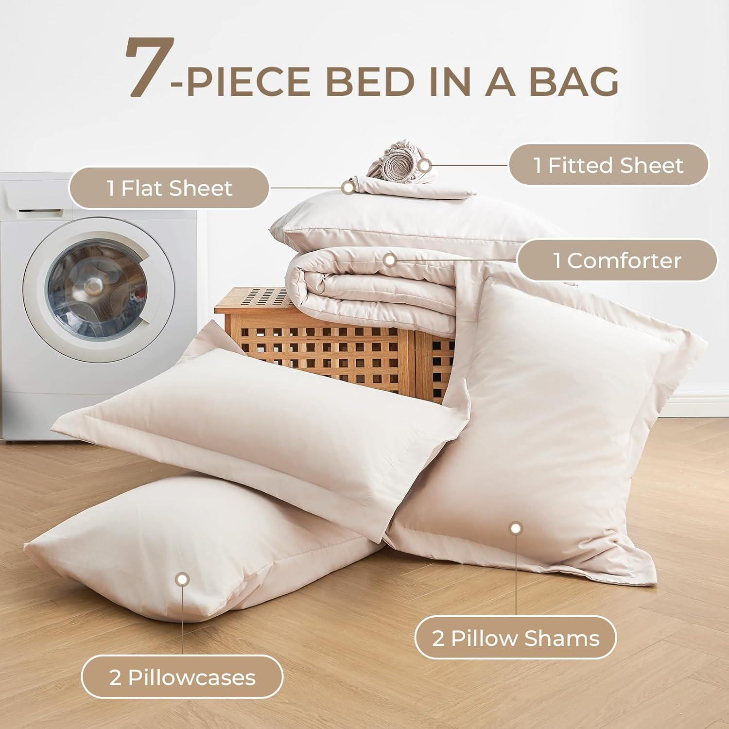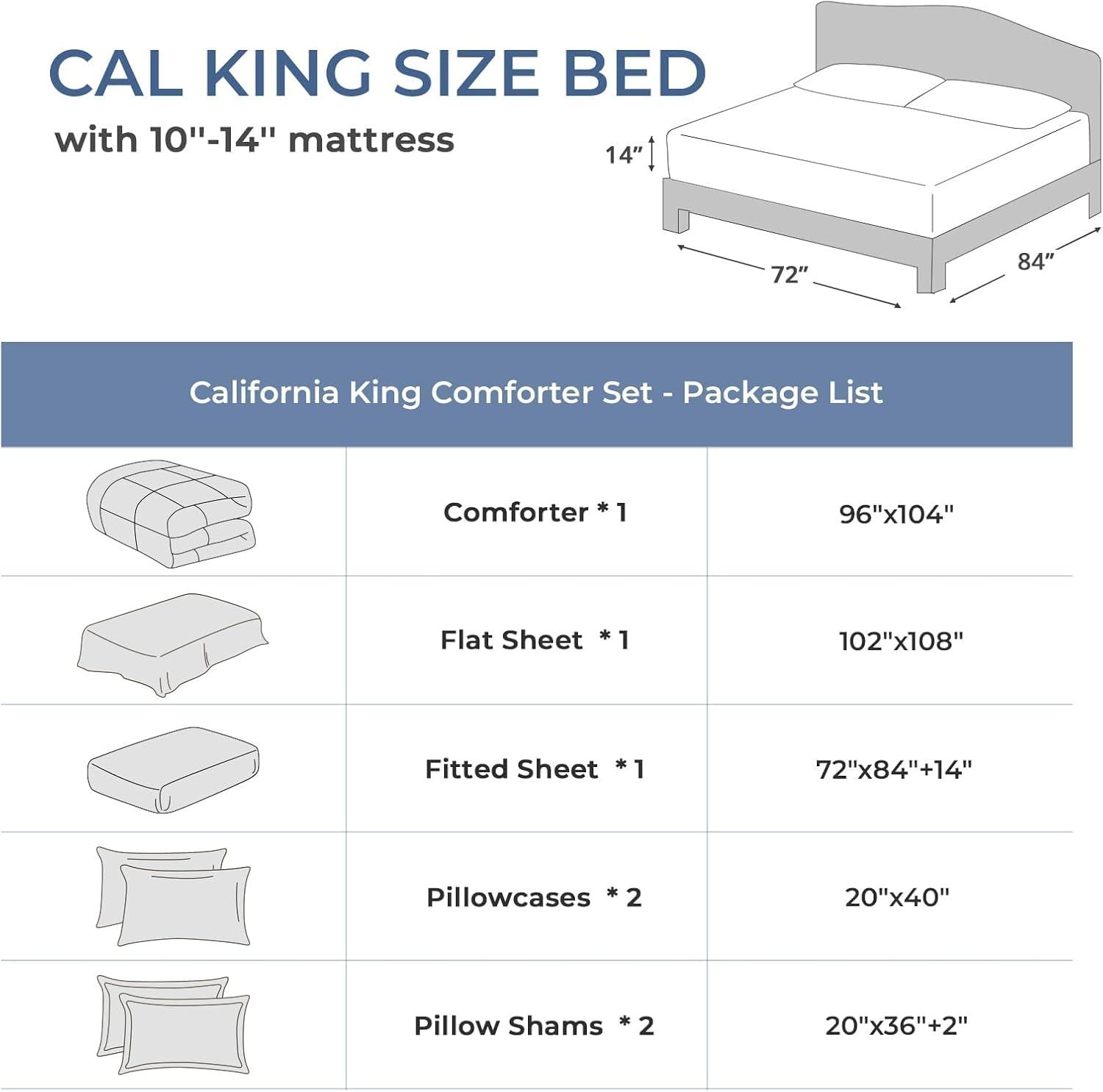 Bed in a Bag California King: Includes 1 comforter (104″x96″), 1 flat sheet (108″x102″), 1 fitted sheet (72″x84″+14″), 2 pillowcases (20″x40″), and 2 pillow shams (20″x36″+2″) to complete your california king bed in one step