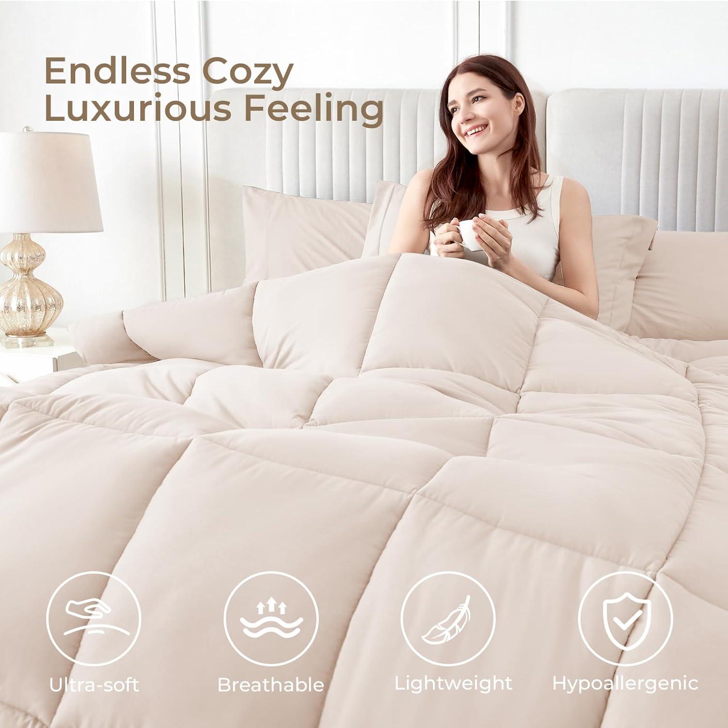 All Season Warmth: Filled with 280GSM down alternative filling, our comforter strikes a great balance between lightweight and warmth. Its sewn through design also prevents filling from shifting or bunching, keeps the filling in place for long-lasting use