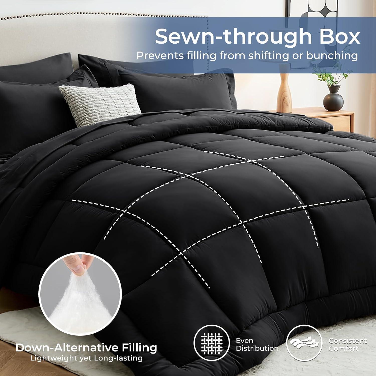 All Season Warmth: Filled with 280GSM down alternative filling, our comforter strikes a great balance between lightweight and warmth. Its sewn through design also prevents filling from shifting or bunching, keeps the filling in place for long-lasting use