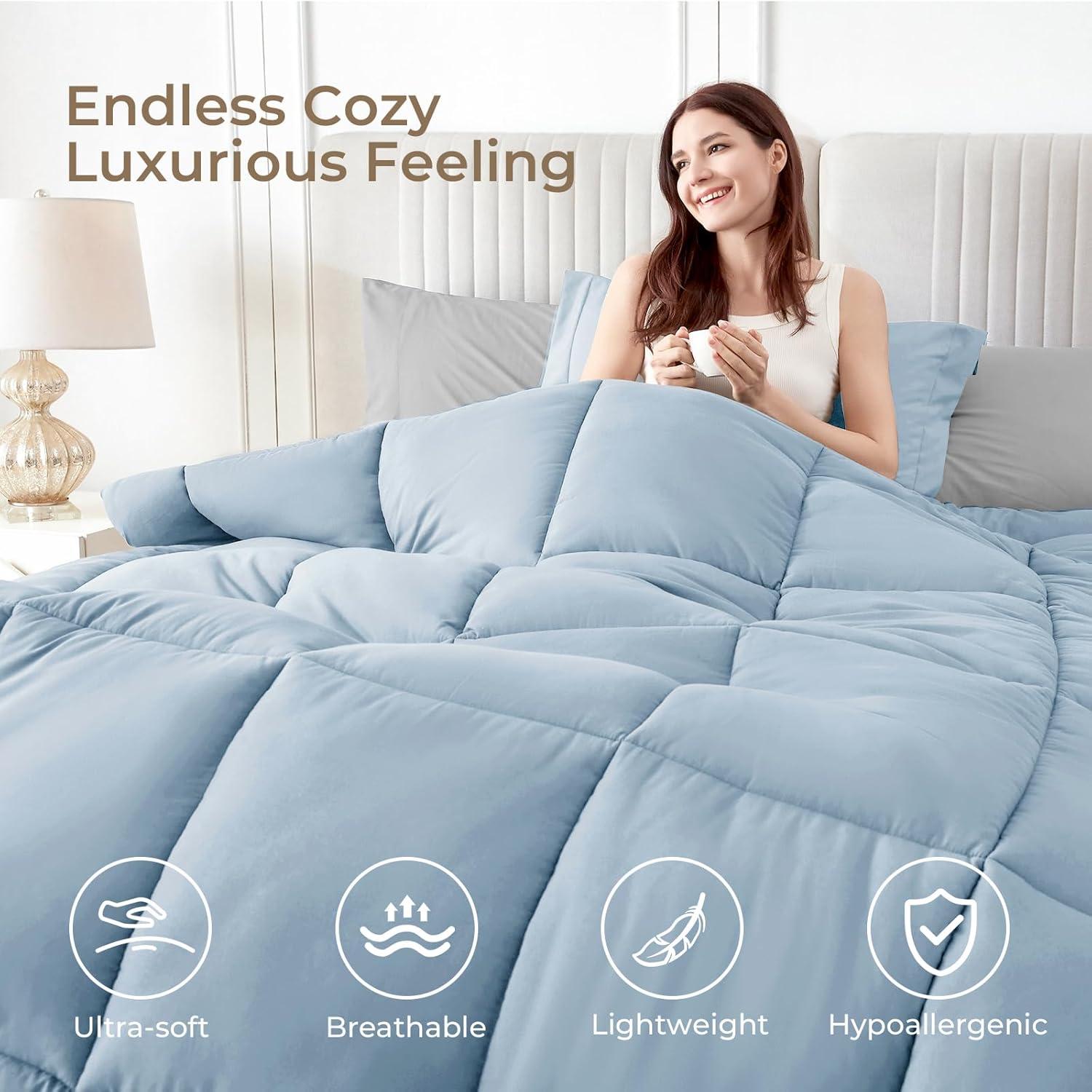 All Season Warmth: Filled with 280GSM down alternative filling, our comforter strikes a great balance between lightweight and warmth. Its sewn through design also prevents filling from shifting or bunching, keeps the filling in place for long-lasting use