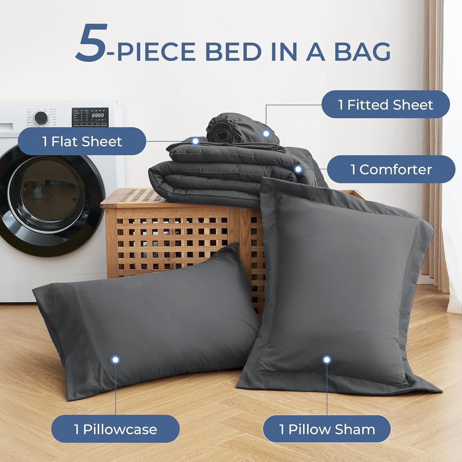 imageSasttie California King Comforter Set 7 Pieces Cal King Bed in a Bag Complete Bedding Set Includes Grey Comforter Flat Sheet Fitted Sheet Pillowcases and Pillow Shams Dark GreyDark Grey