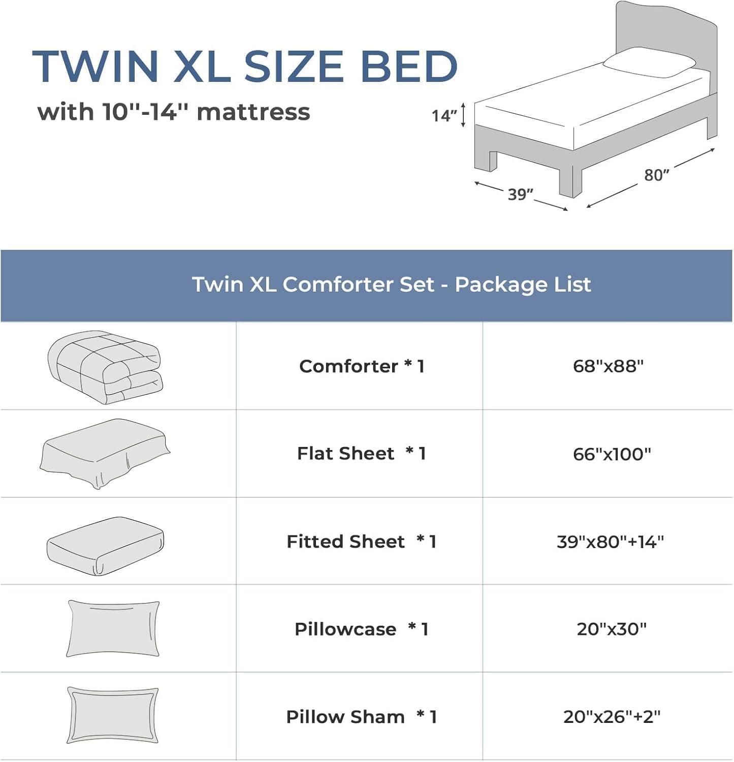 Bed in a Bag California King: Includes 1 comforter (104″x96″), 1 flat sheet (108″x102″), 1 fitted sheet (72″x84″+14″), 2 pillowcases (20″x40″), and 2 pillow shams (20″x36″+2″) to complete your california king bed in one step