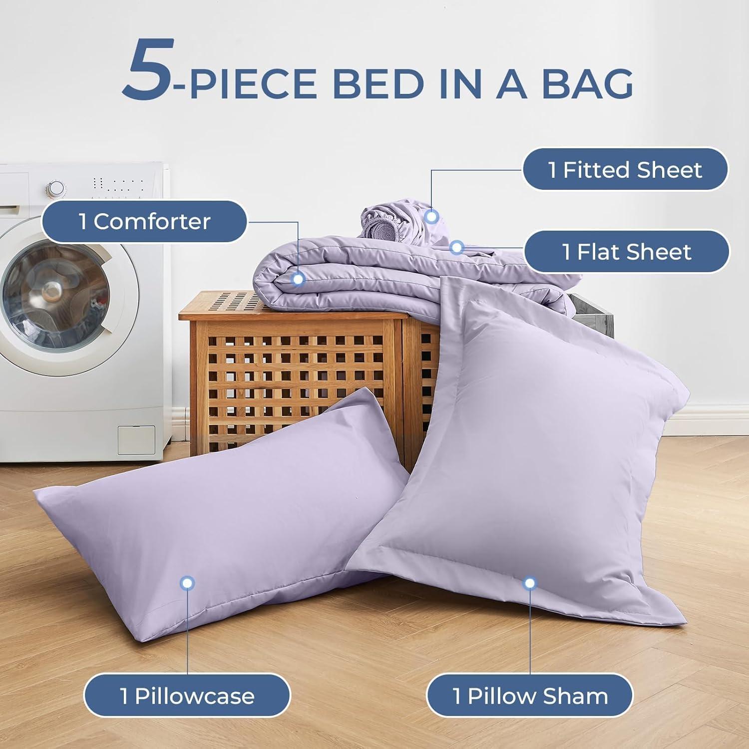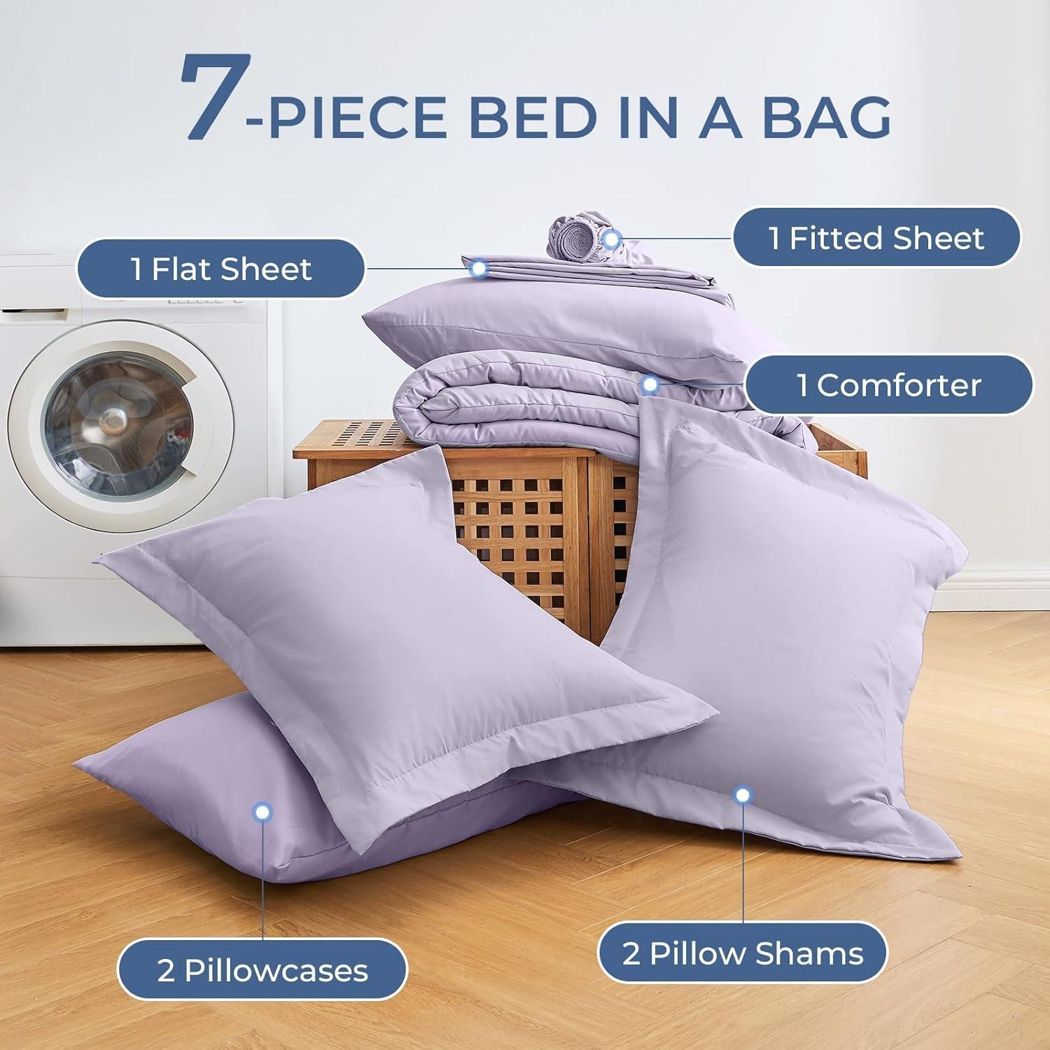 Bed in a Bag California King: Includes 1 comforter (104″x96″), 1 flat sheet (108″x102″), 1 fitted sheet (72″x84″+14″), 2 pillowcases (20″x40″), and 2 pillow shams (20″x36″+2″) to complete your california king bed in one step