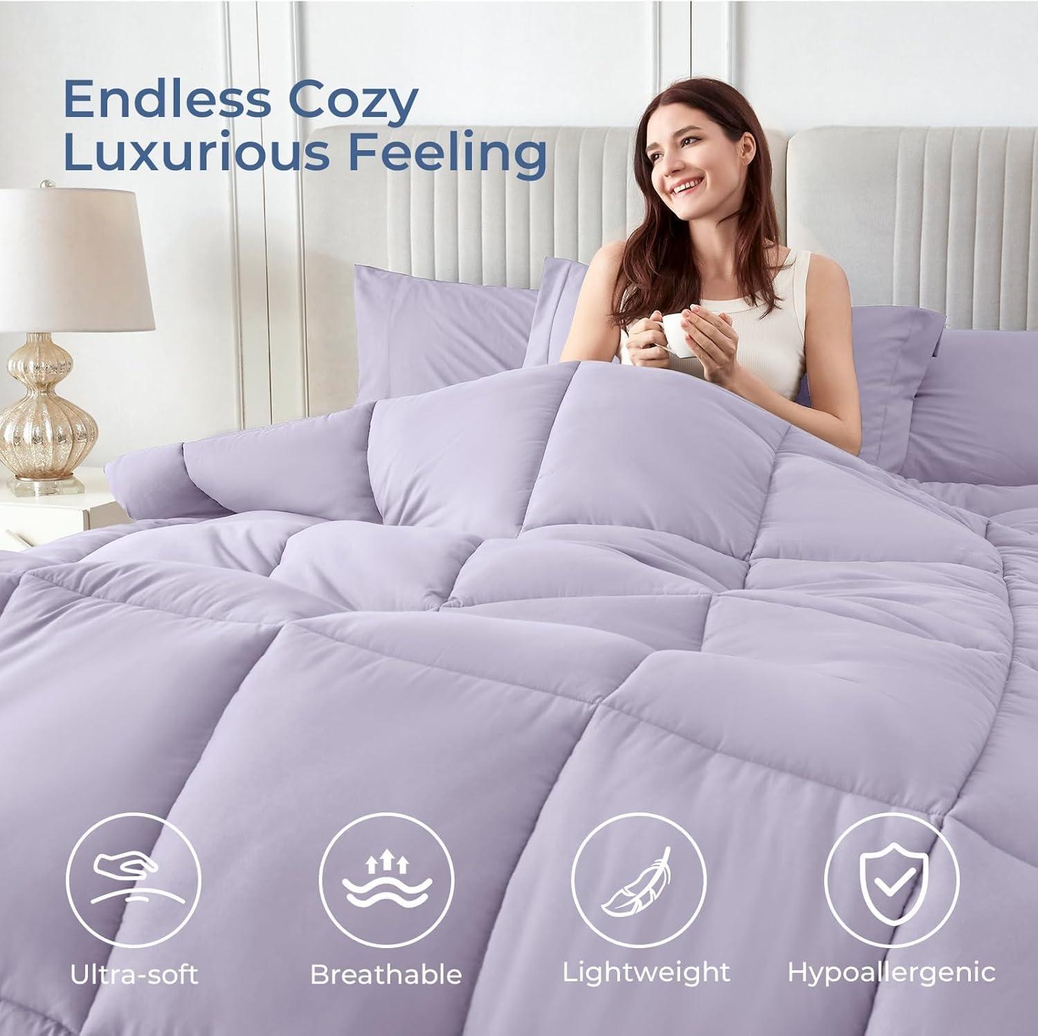 All Season Warmth: Filled with 280GSM down alternative filling, our comforter strikes a great balance between lightweight and warmth. Its sewn through design also prevents filling from shifting or bunching, keeps the filling in place for long-lasting use