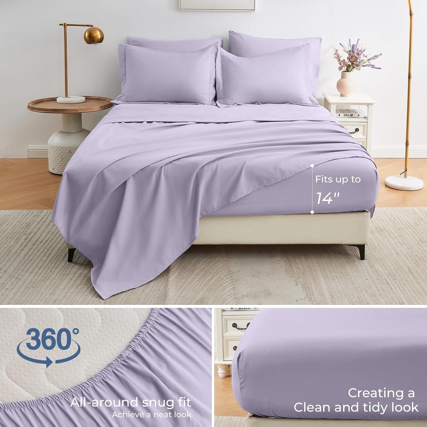 Thoughtful Details: The 360° elastic fitted sheet fits mattresses up to 14'' deep, ensuring all-around snug fit. The smooth, breathable flat sheet ensures ultimate comfort while remaining whisper-quiet, allowing for a restful night's sleep