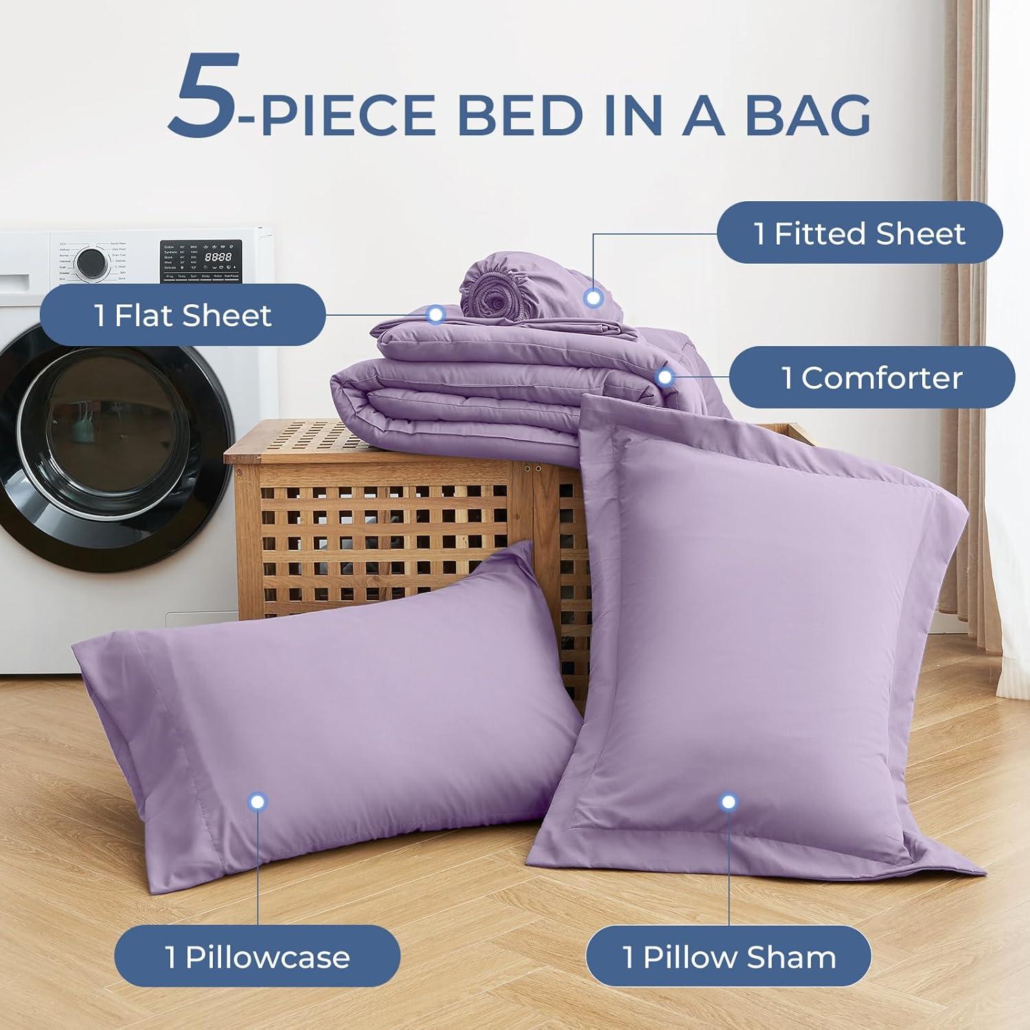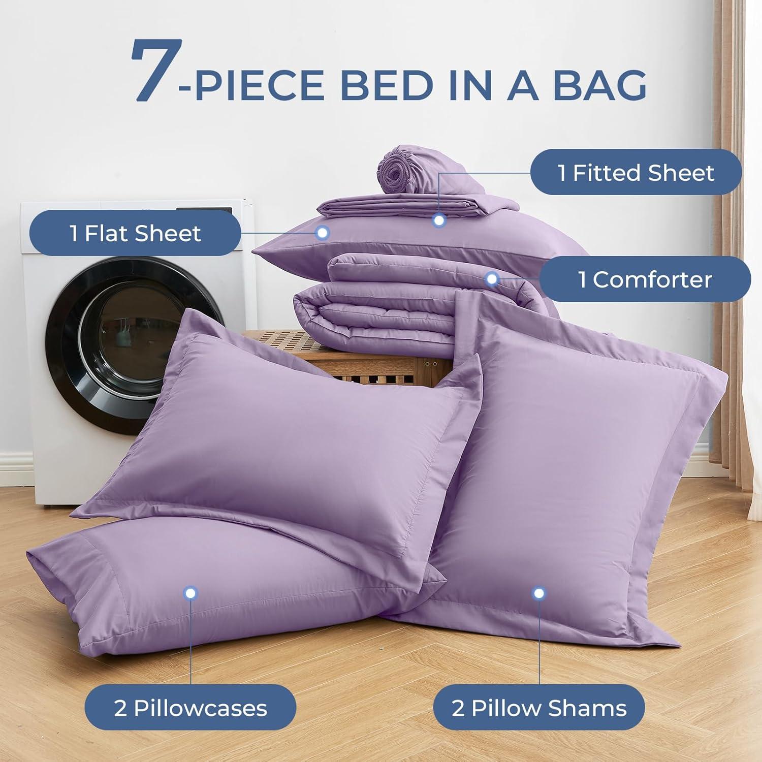 Bed in a Bag California King: Includes 1 comforter (104″x96″), 1 flat sheet (108″x102″), 1 fitted sheet (72″x84″+14″), 2 pillowcases (20″x40″), and 2 pillow shams (20″x36″+2″) to complete your california king bed in one step