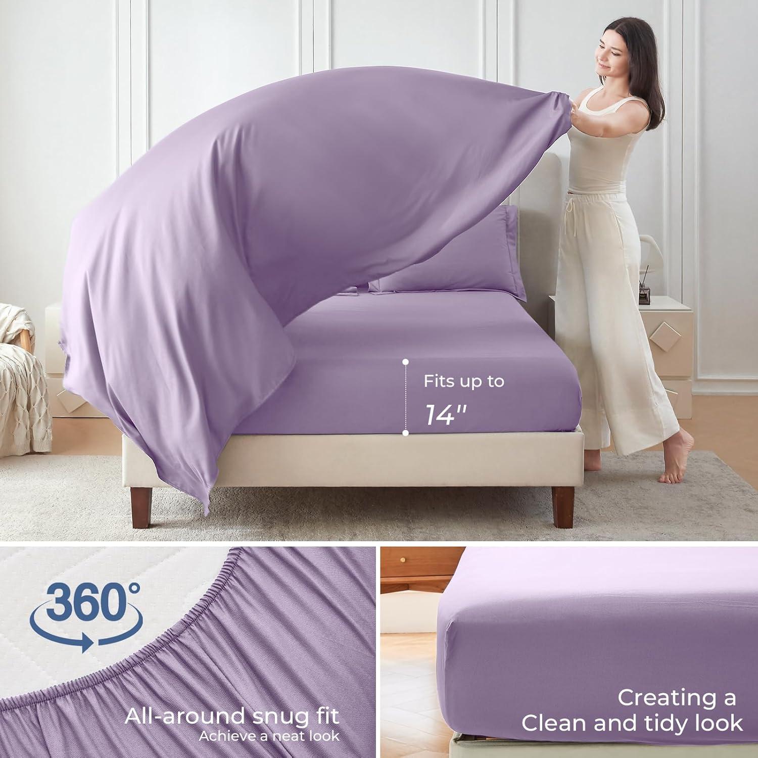 Thoughtful Details: The 360° elastic fitted sheet fits mattresses up to 14'' deep, ensuring all-around snug fit. The smooth, breathable flat sheet ensures ultimate comfort while remaining whisper-quiet, allowing for a restful night's sleep