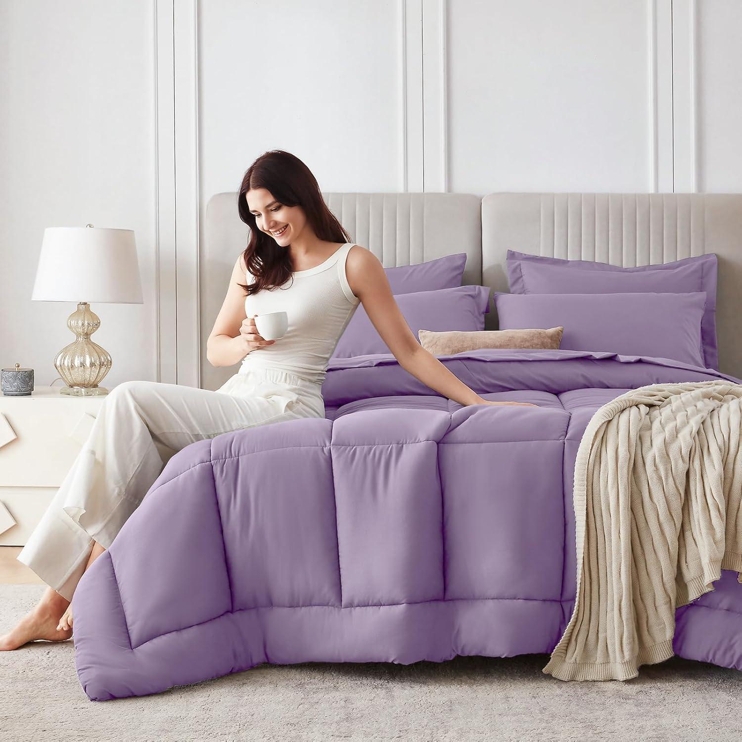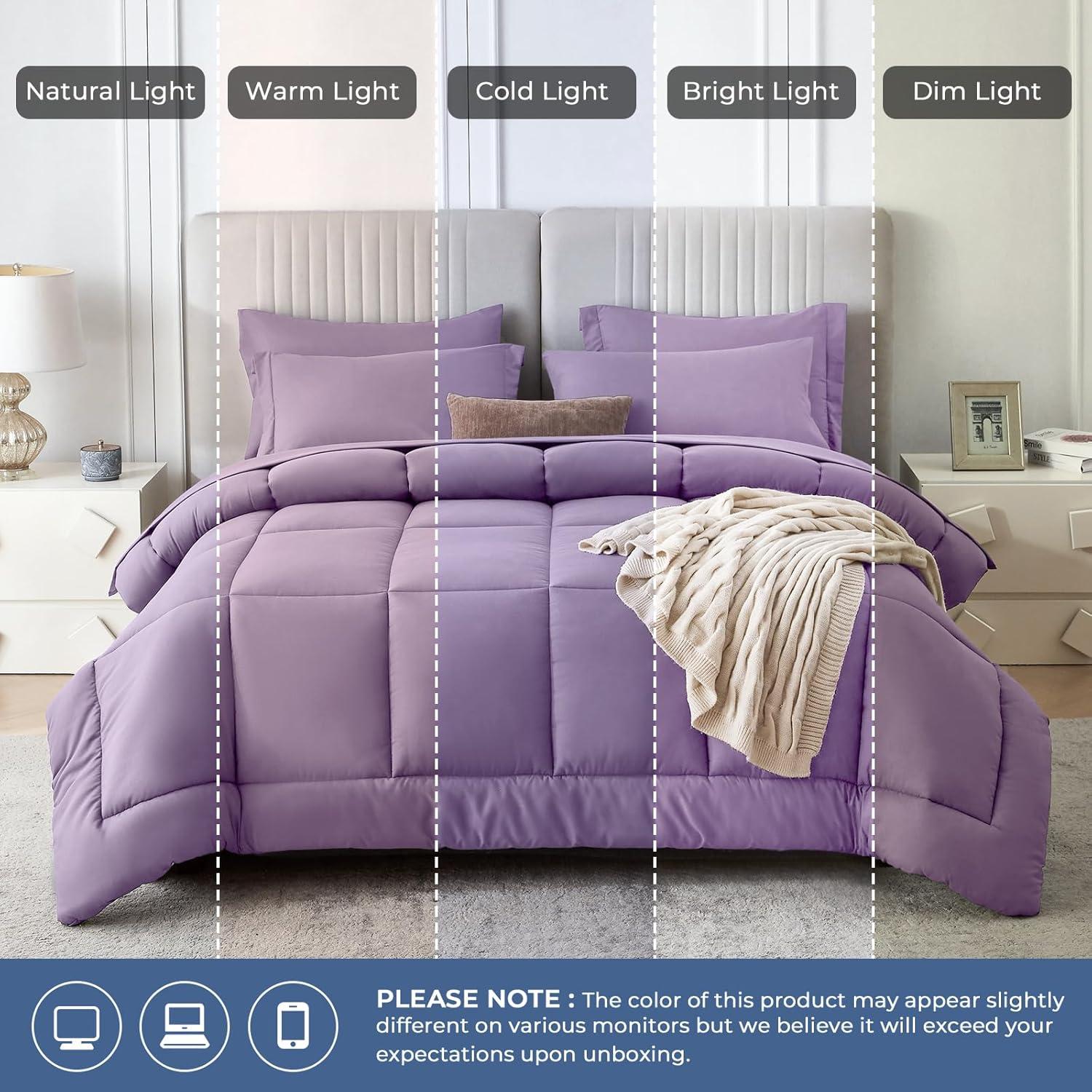 Sasttie California King Comforter Set, 7 Pieces Cal King Bed in a Bag, Complete Bedding Set Includes Grey Comforter, Flat Sheet, Fitted Sheet, Pillowcases and Pillow Shams, Dark Grey(Violet)