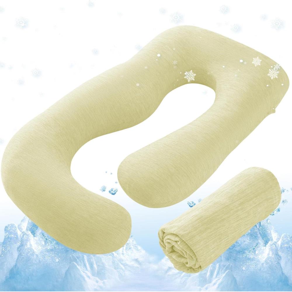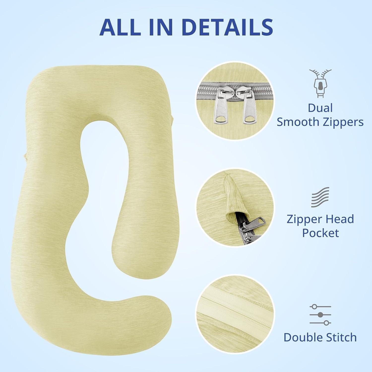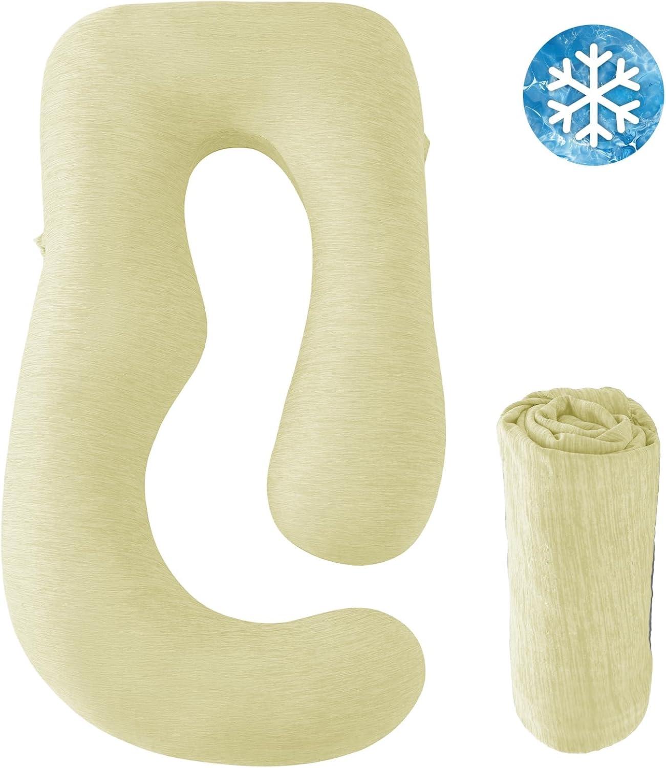 Sasttie Cooling Pregnancy Pillow Cover, 57-inch U Shaped Pregnancy Pillow Case, Fits 55 to 57 Inch Maternity Pillow, Grey (No Pillow Insert)(Yellow)