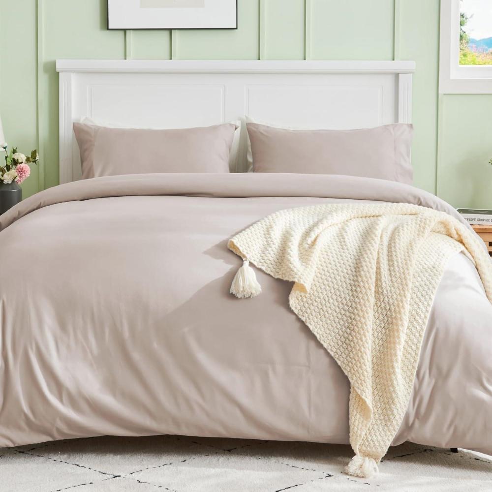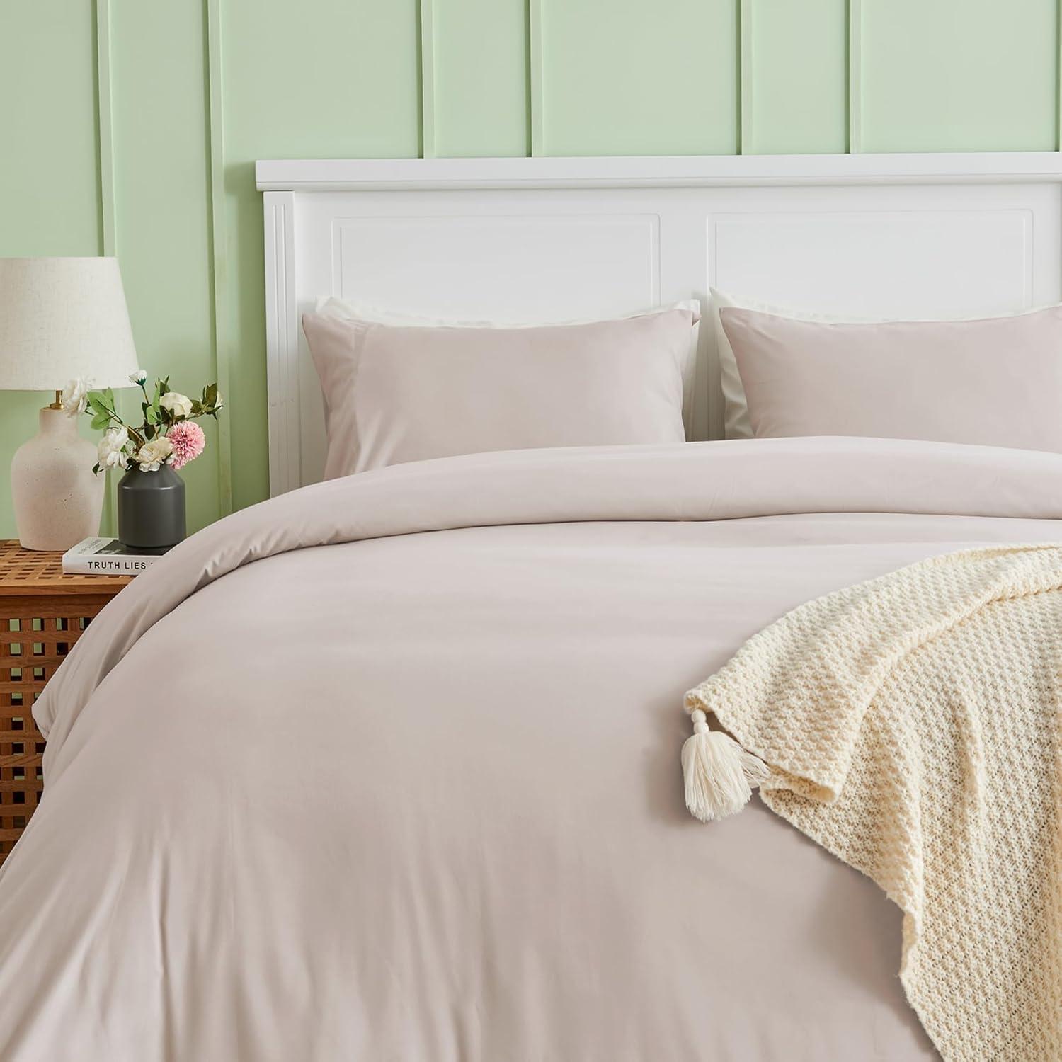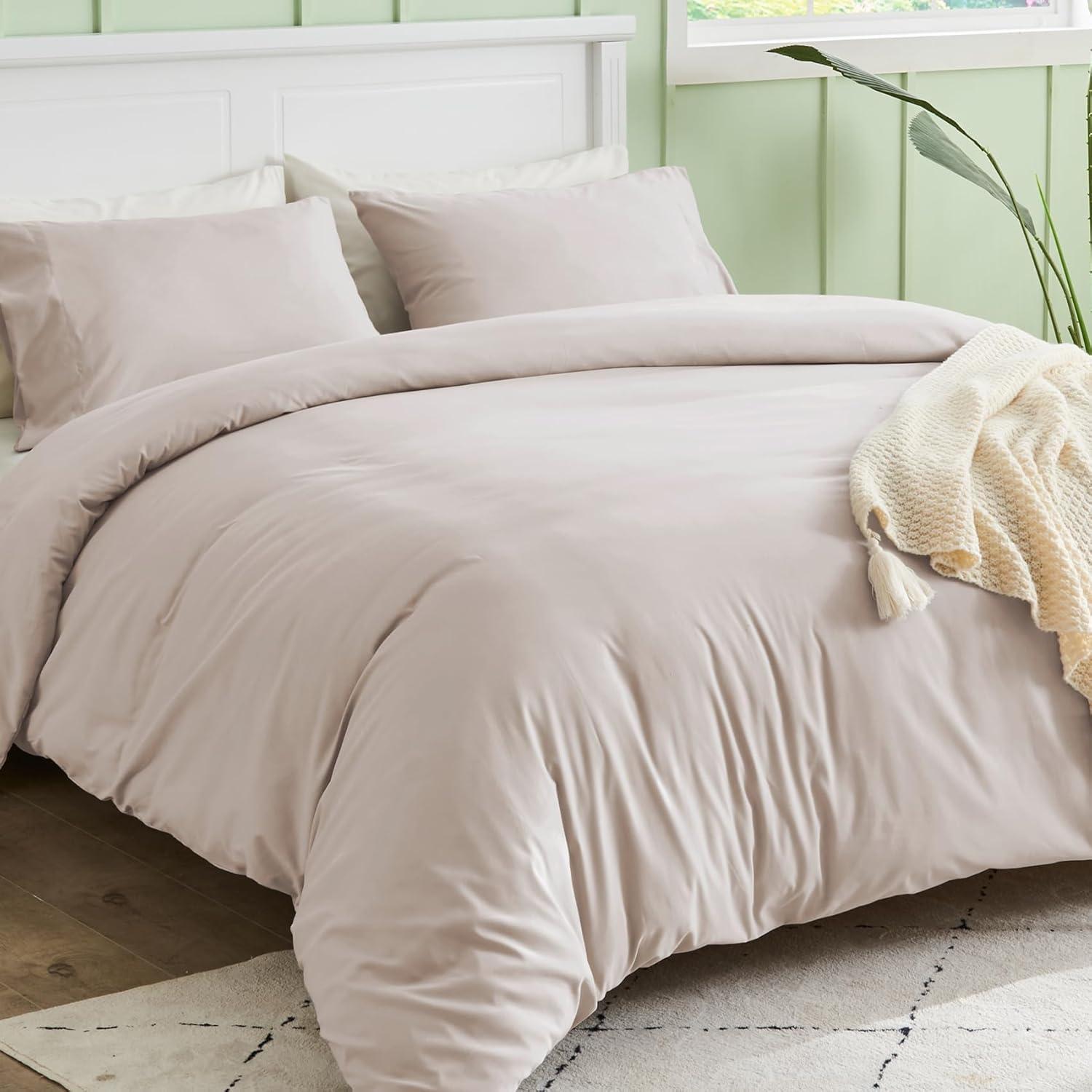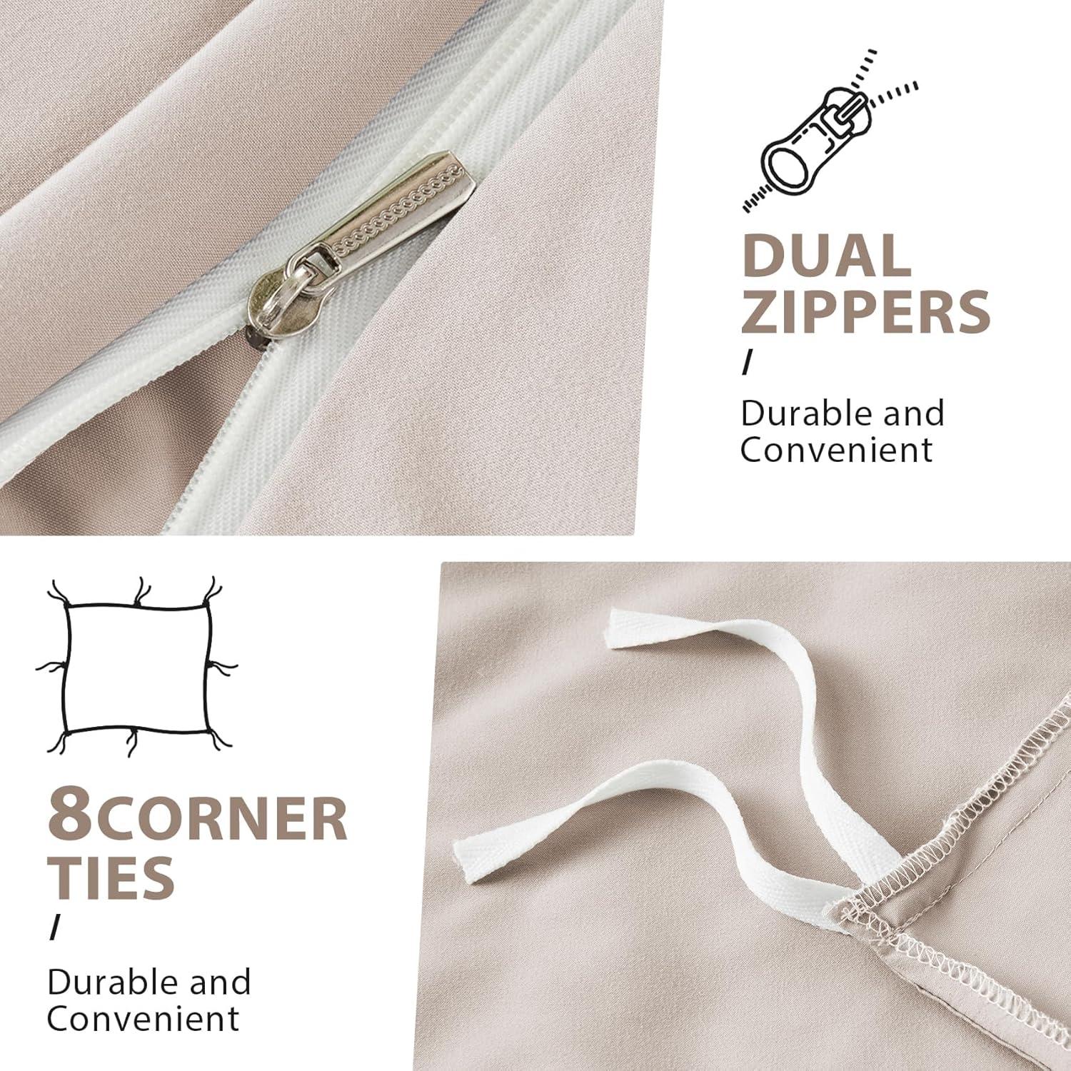 Sasttie Duvet Cover King, 3-Piece Ultra-Soft Double Brushed Duvet Cover Set - Features Zipper Closure and Corner Ties, Beige
