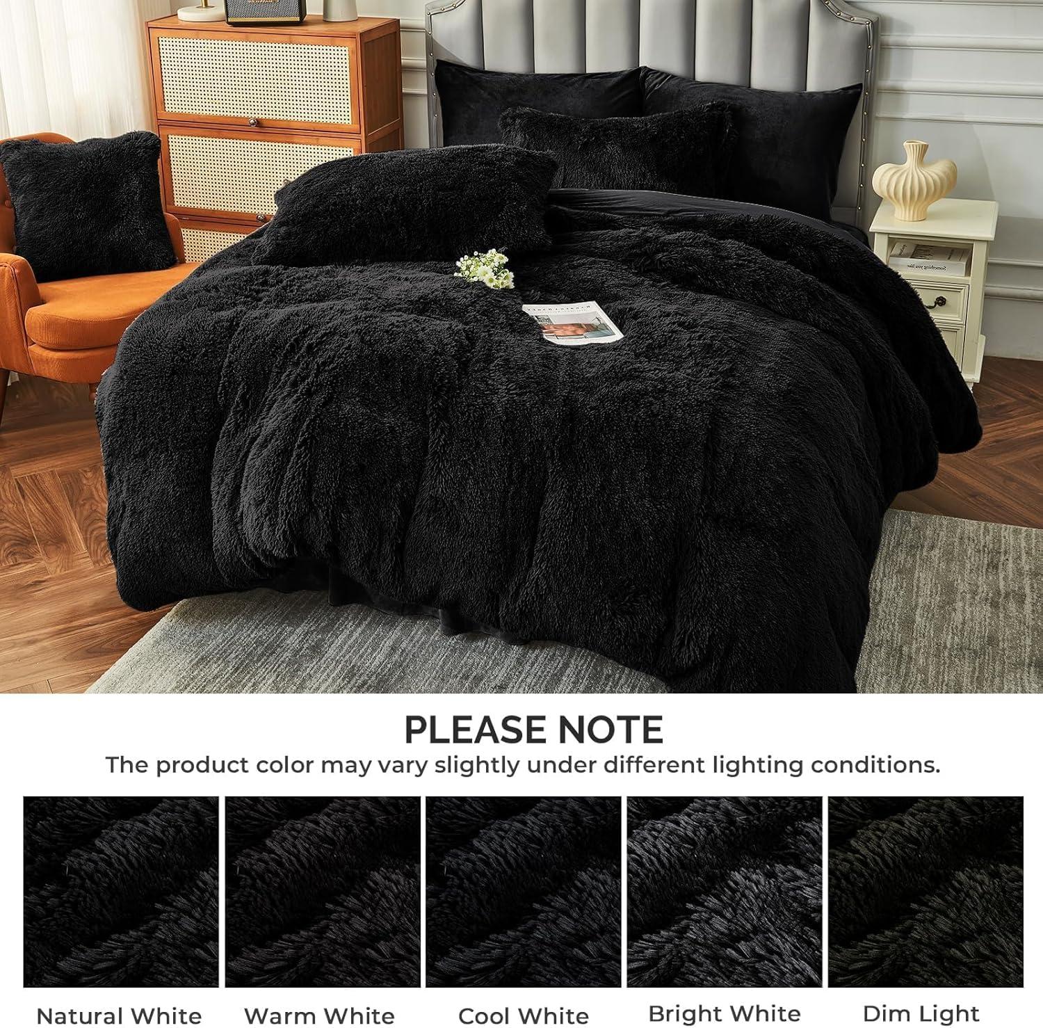 Care Instructions: To maintain the luxurious softness and appearance of your fuzzy duvet cover set, please machine wash it using a gentle cycle with cold water, dry it with no heat setting. High heat can damage the fibers and reduce the fluffy texture