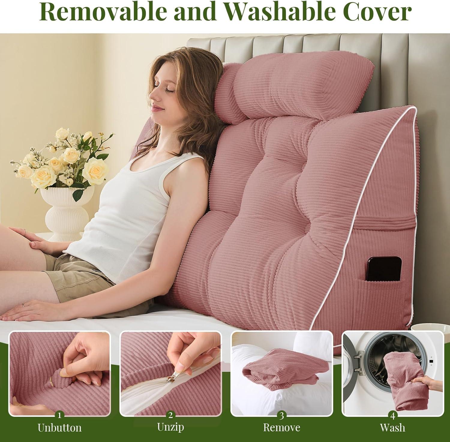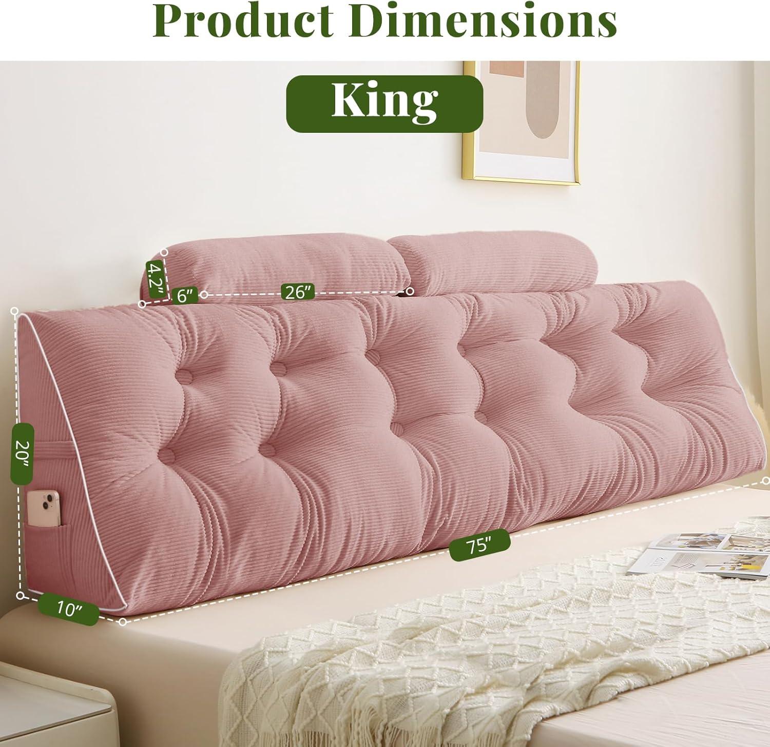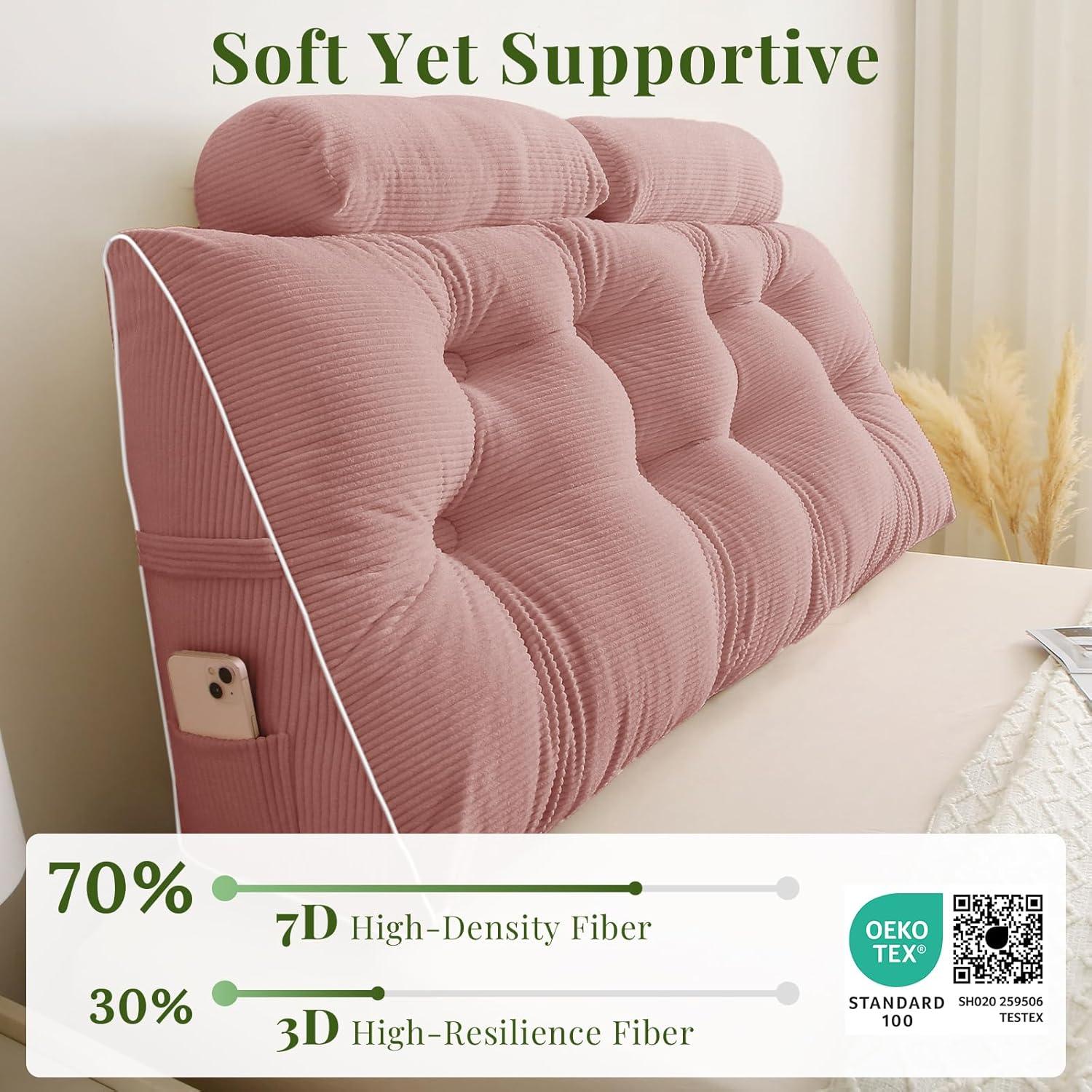 Bulit to Last: Crafted from 9 oz/yd² heavyweight wide wale corduroy, our headboard pillow combines plush texture with exceptional durability. The thick ridged fabric resists wear and tear, making it ideal for long-term use. Machine wash with low temperature drying. Note: After opening the packaging, please fluff the product with both hands and place it in a well-ventilated area for 2-3 days to restore its fluffiness