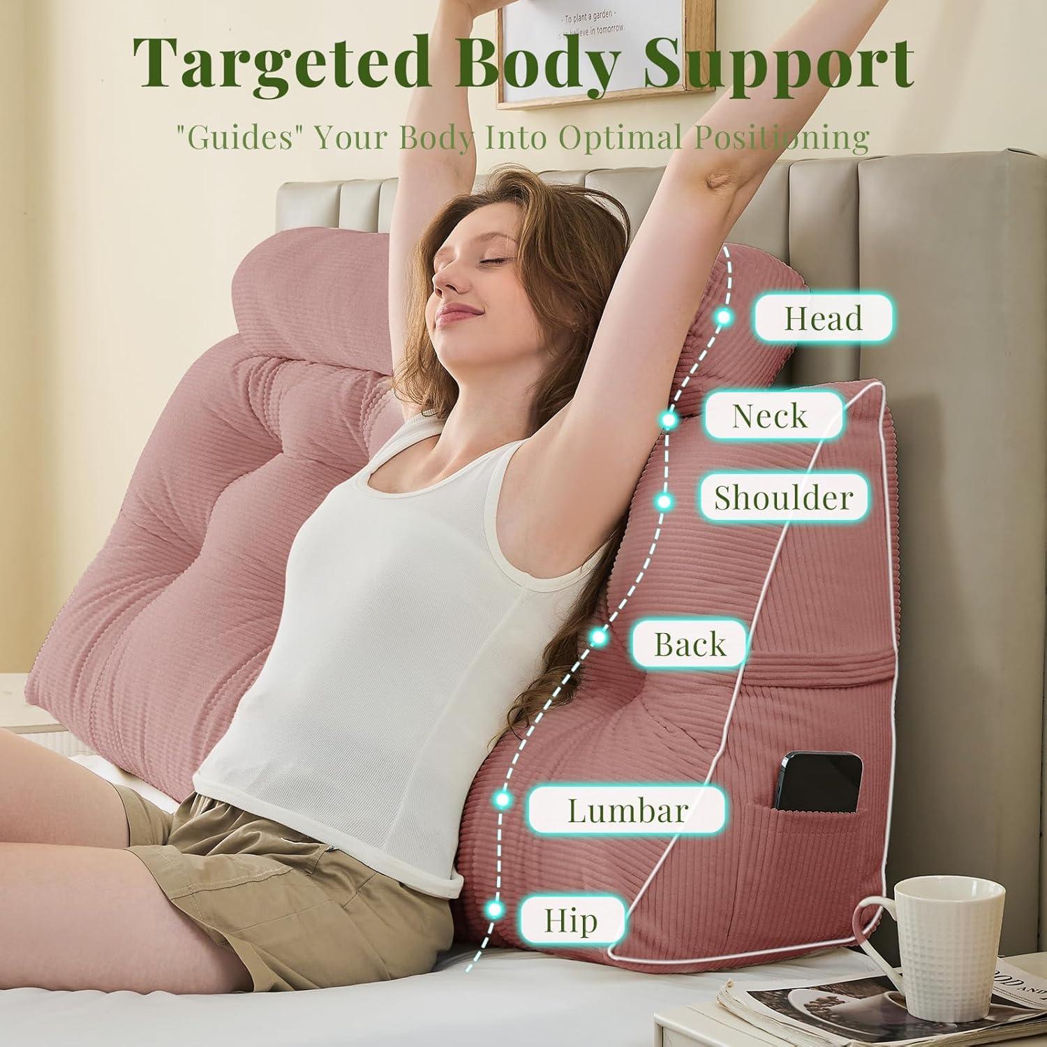 Ergonomic Support: Our headboard pillow supports your neck, shoulders and back all at once. The wedge-shaped design with an adjustable headrest keeps you upright without slipping or straining. Just lean back and feel fully supported and relaxed