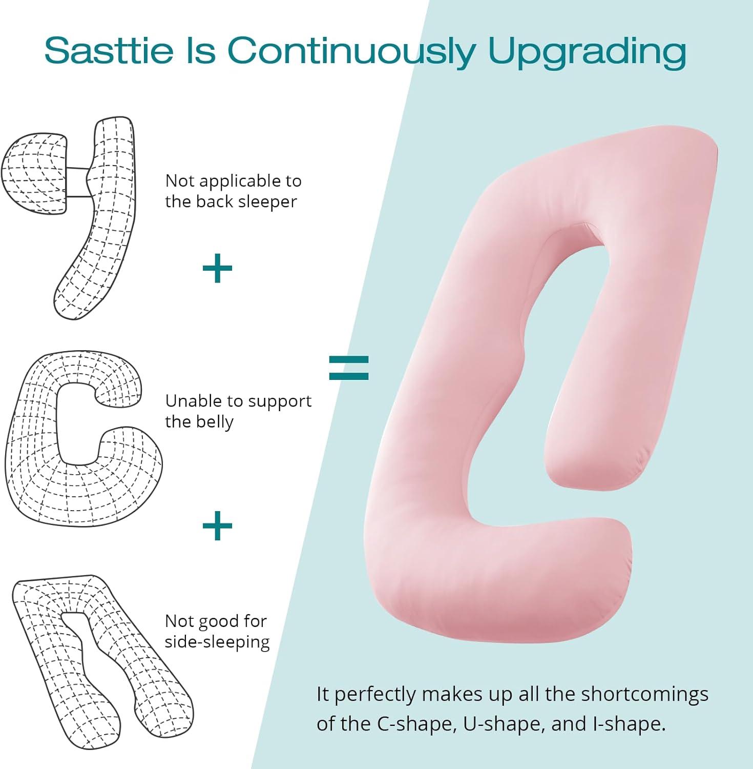 Upgraded U Shaped Pregnancy Pillows: Features an ergonomically designed shape, SASTTIE 4.0 U-shaped pregnancy pillow could fit your body well and provide firm support for your sore shoulders, numb arms, growing belly, tight back, as well as swollen feet