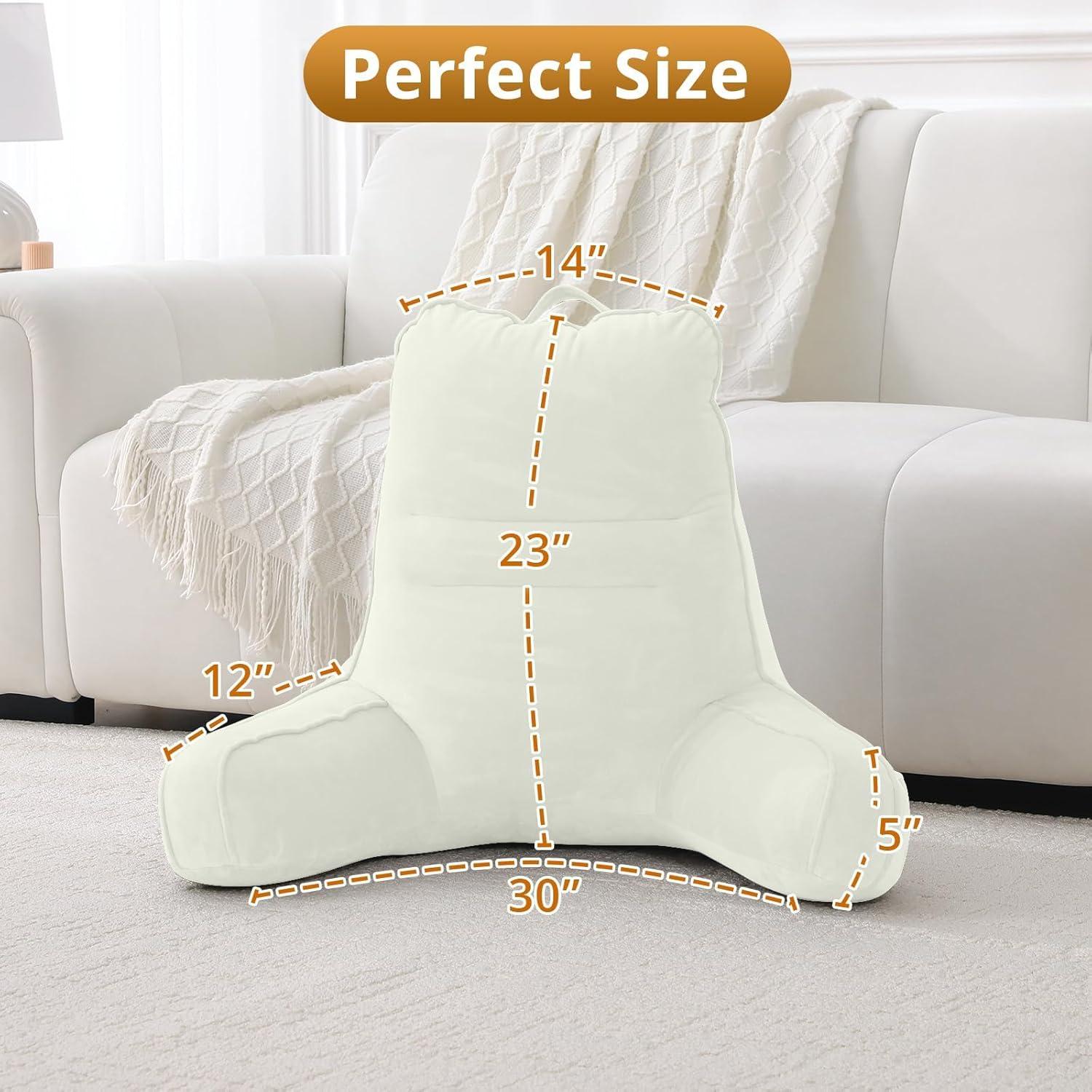 Sasttie Reading Pillow for Bed - 23 Inch, Back Pillow for Bed Sitting Up, Back-Rest Support Cushion with Side Pockets and Arms, Dorm Essentials, Oeko-Tex Certified, Light Pink(Cream)