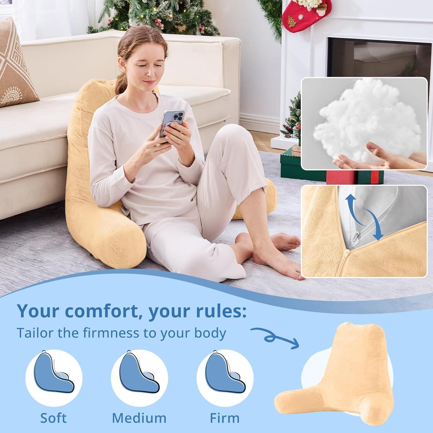 Superior Support: This back rest reading pillow with arms features a 4.5 lbs high resilience filling, providing firm yet comfortable support for your back and neck, offering optimal support to alleviate tension and promote relaxation