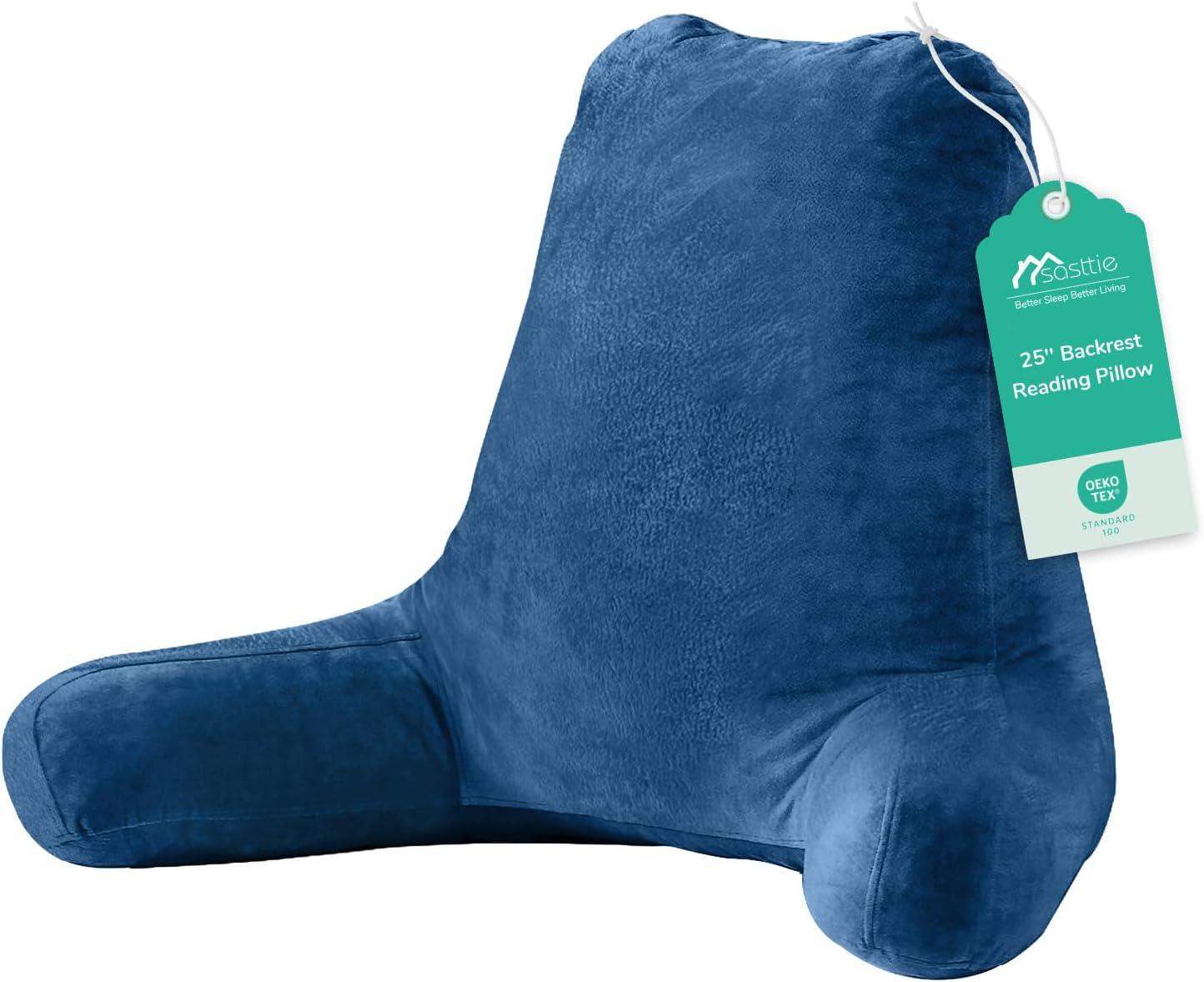 imageSasttie Reading Pillow for Sitting in Bed Adult Back Pillow for Bed Sitting Up Backrest Back Support Chair Pillow College Dorm Essentials for Girls and Boys Greyish Blue StandardNavy