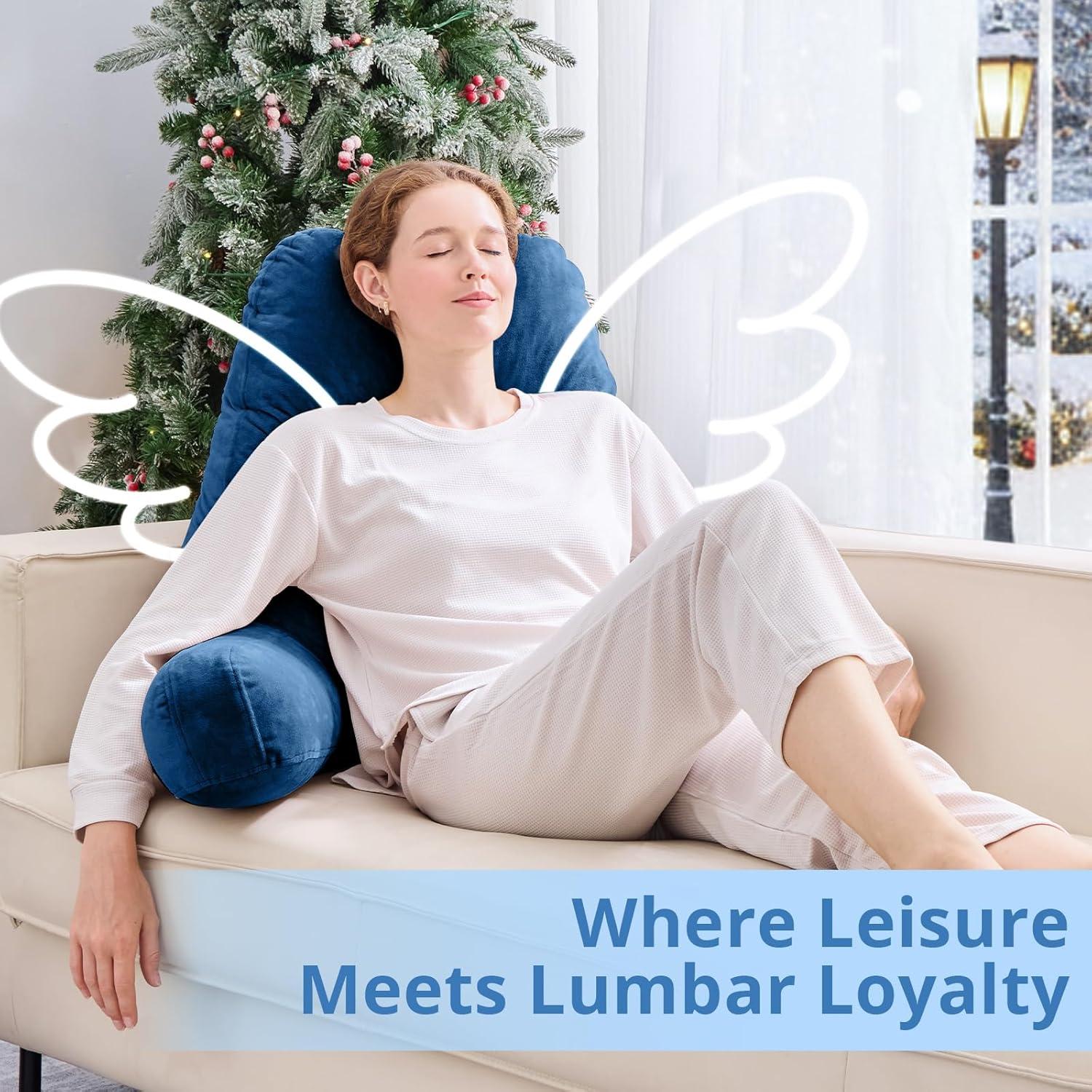Sasttie Reading Pillow for Sitting in Bed Adult, Back Pillow for Bed Sitting Up, Backrest Back Support Chair Pillow, College Dorm Essentials for Girls and Boys, Greyish Blue Standard(Navy)
