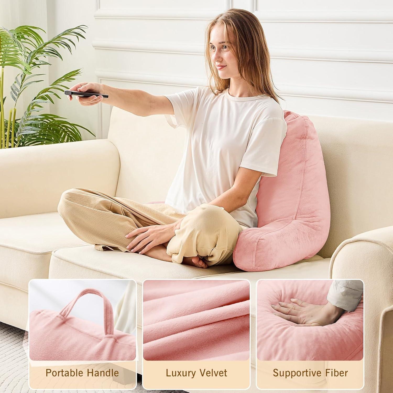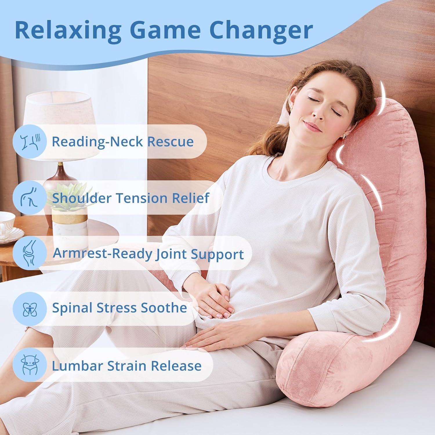 Sasttie Reading Pillow for Sitting in Bed Adult, Back Pillow for Bed Sitting Up, Backrest Back Support Chair Pillow, College Dorm Essentials for Girls and Boys, Greyish Blue Standard(Pink)