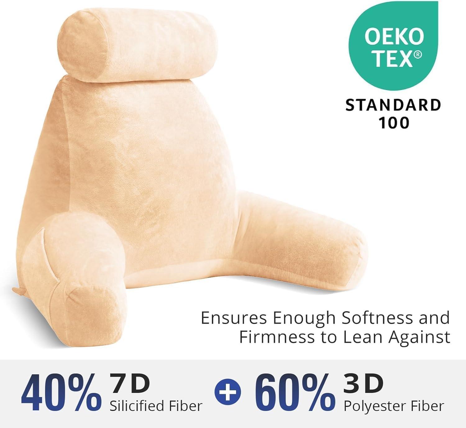 Premium Polyester Filling: The SASTTIE reading pillow blends 40% 7D silicified fiber and 60% 3D polyester fiber, providing an optimal balance of support and comfort. This premium filling ensures a restful experience, great for sitting up in bed