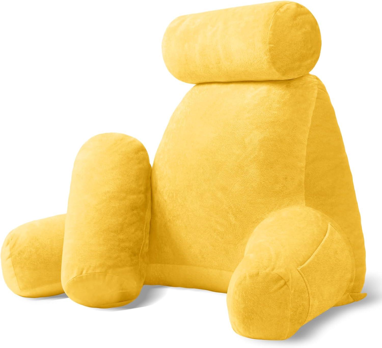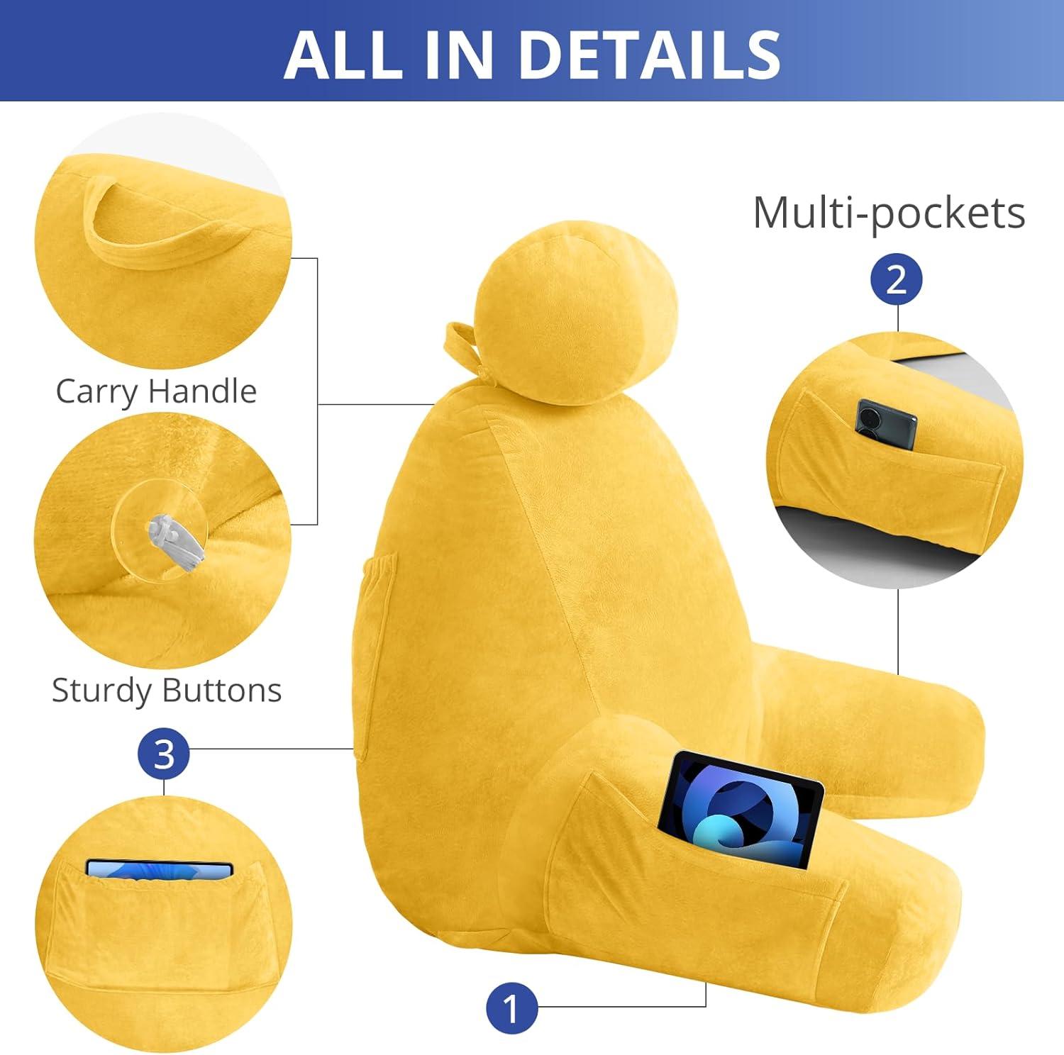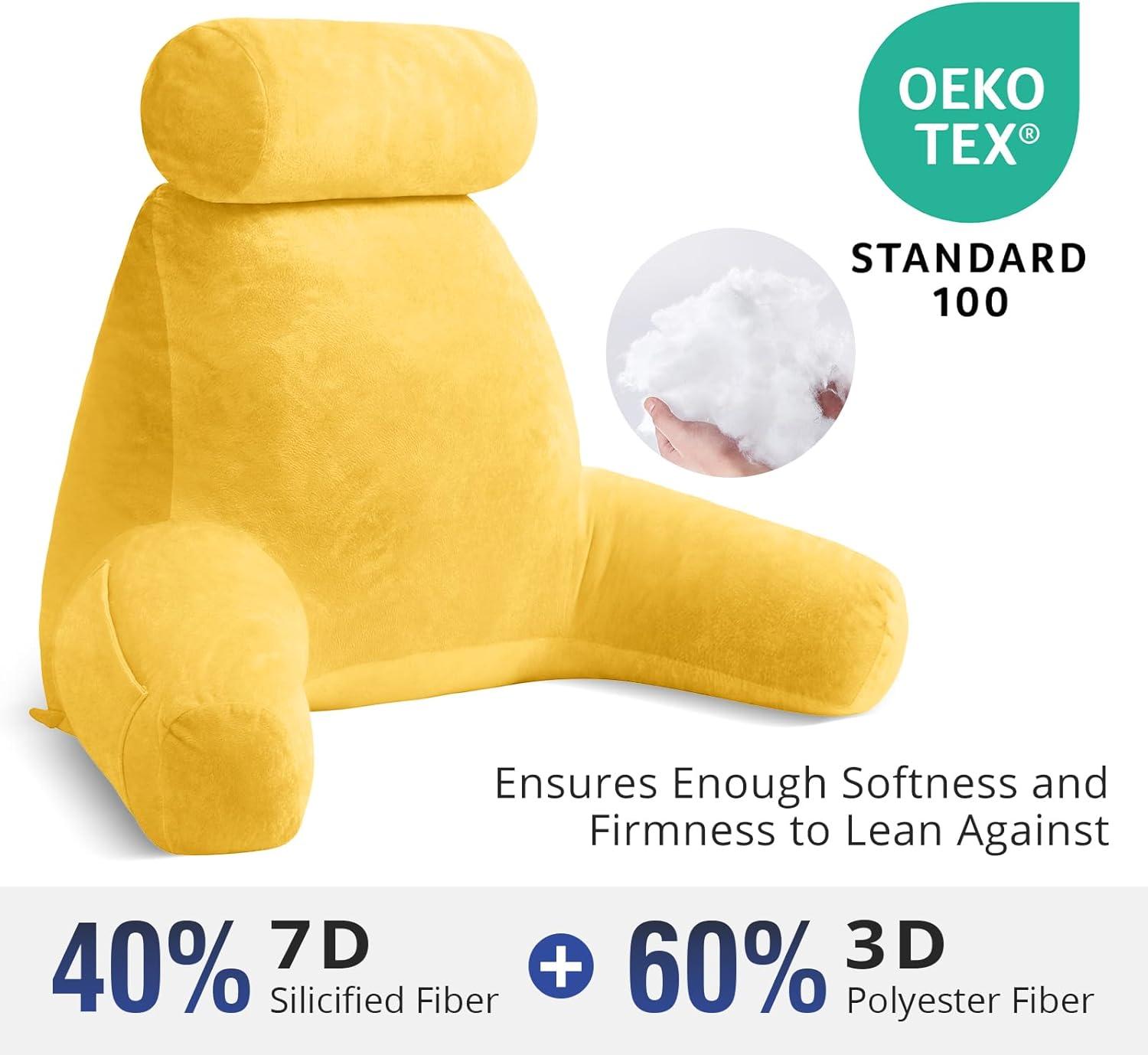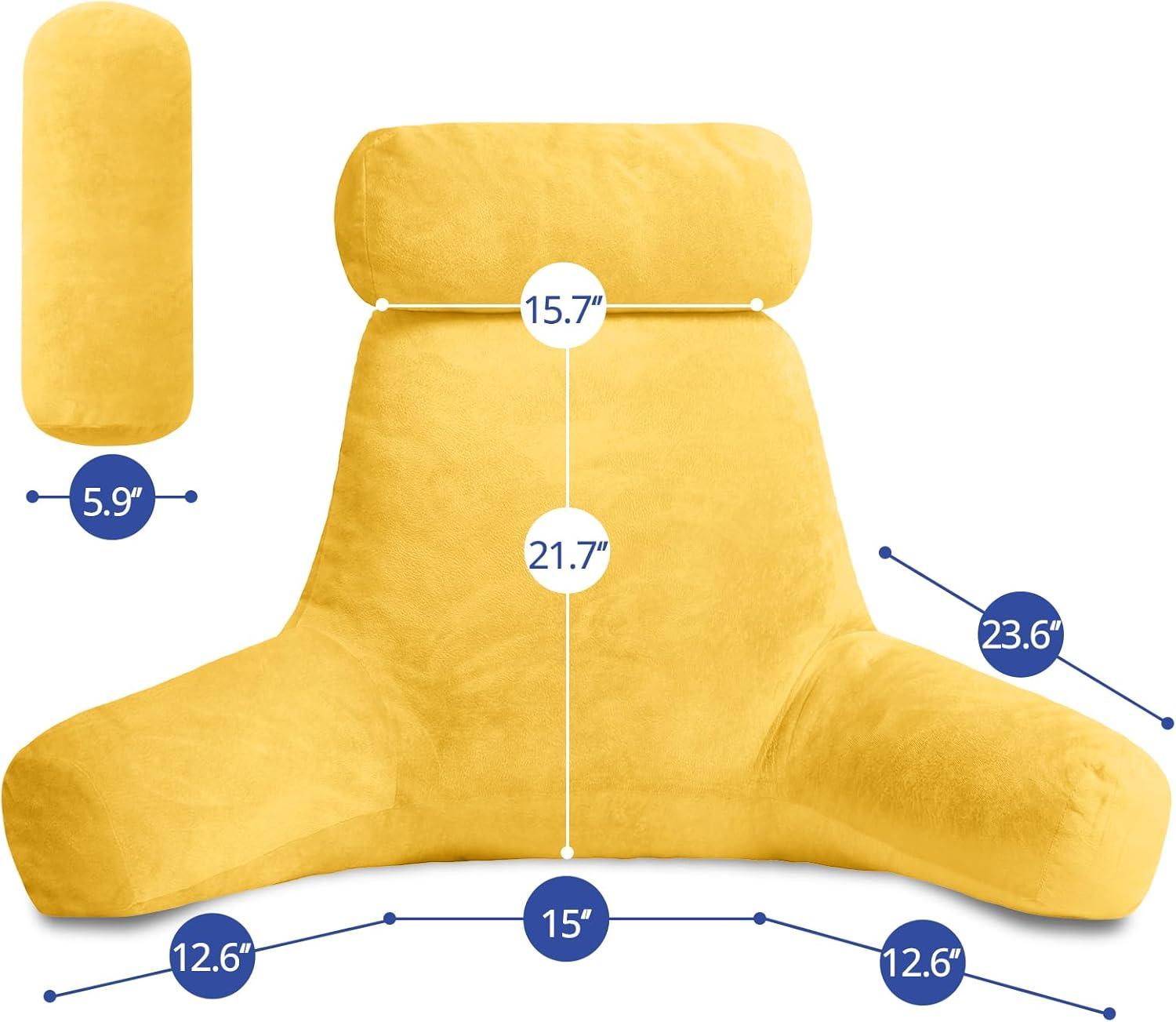 Sasttie Reading Pillows for Sitting in Bed Adult, Velvet Back Pillow Bed Sitting Up, Back-Rest Support Cushion for Sit Up on Couch, Sofa, and Floor, Dorm Essentials, Oeko-Tex Certified, Dark Grey(Yellow)