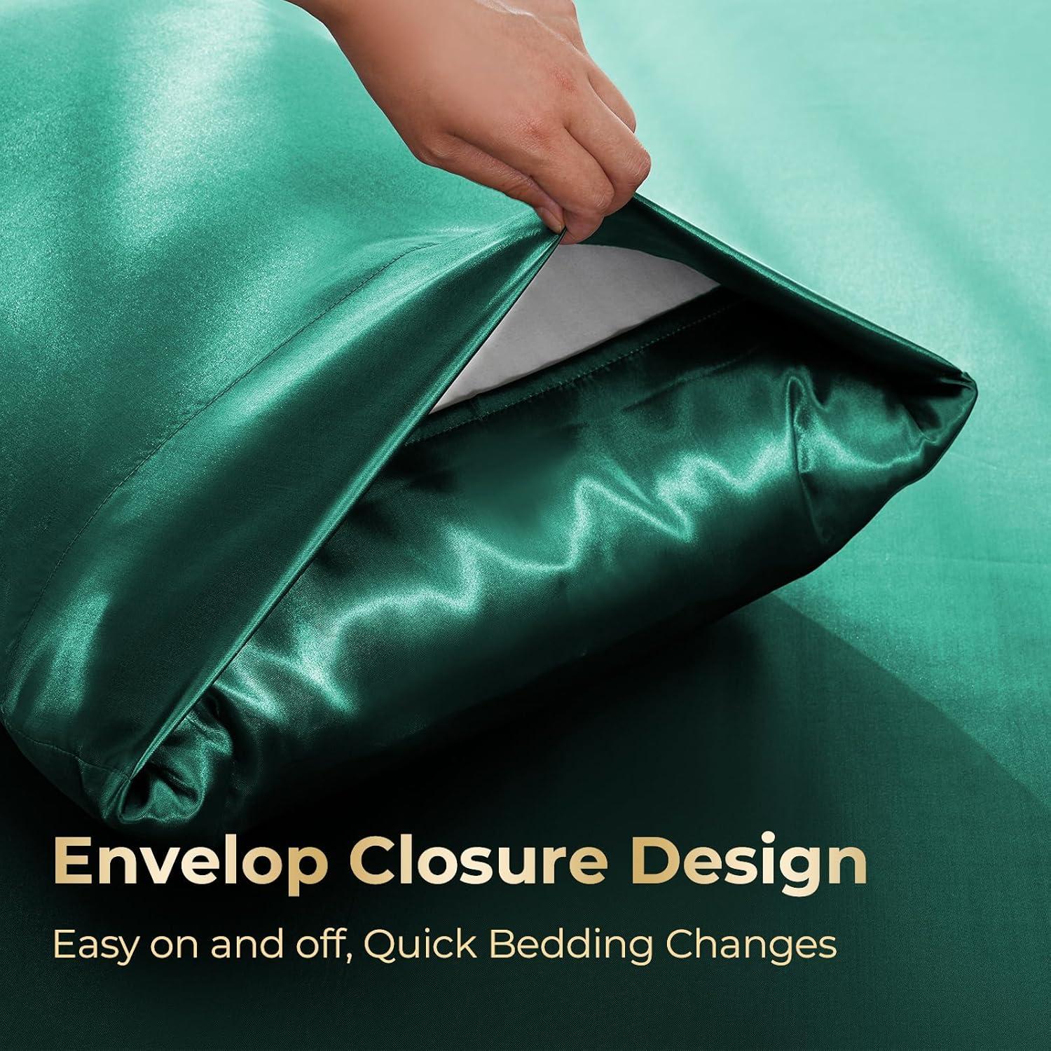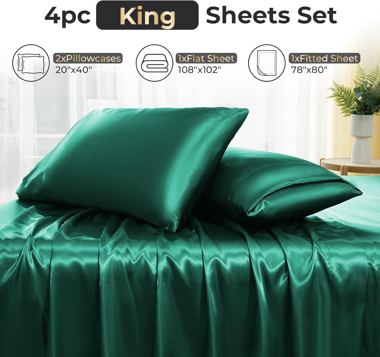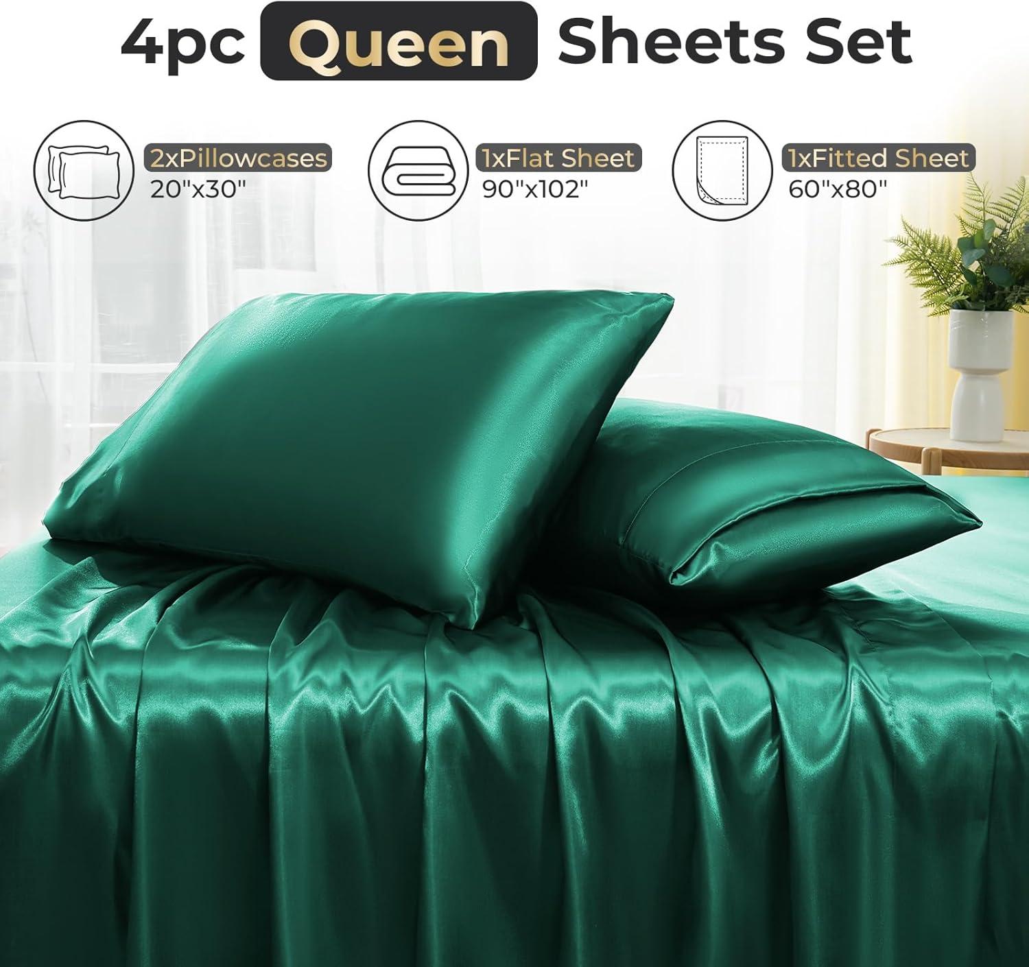 Sasttie Satin Sheets Queen Size - 4 Pieces Luxury Soft Pink Silky Bed Sheets Set with Pillowcases - Smooth Silk-Like Satin Fabric, Reinforced 14 Inches Pocket, Oeko-Tex Certified(Emerald Green)