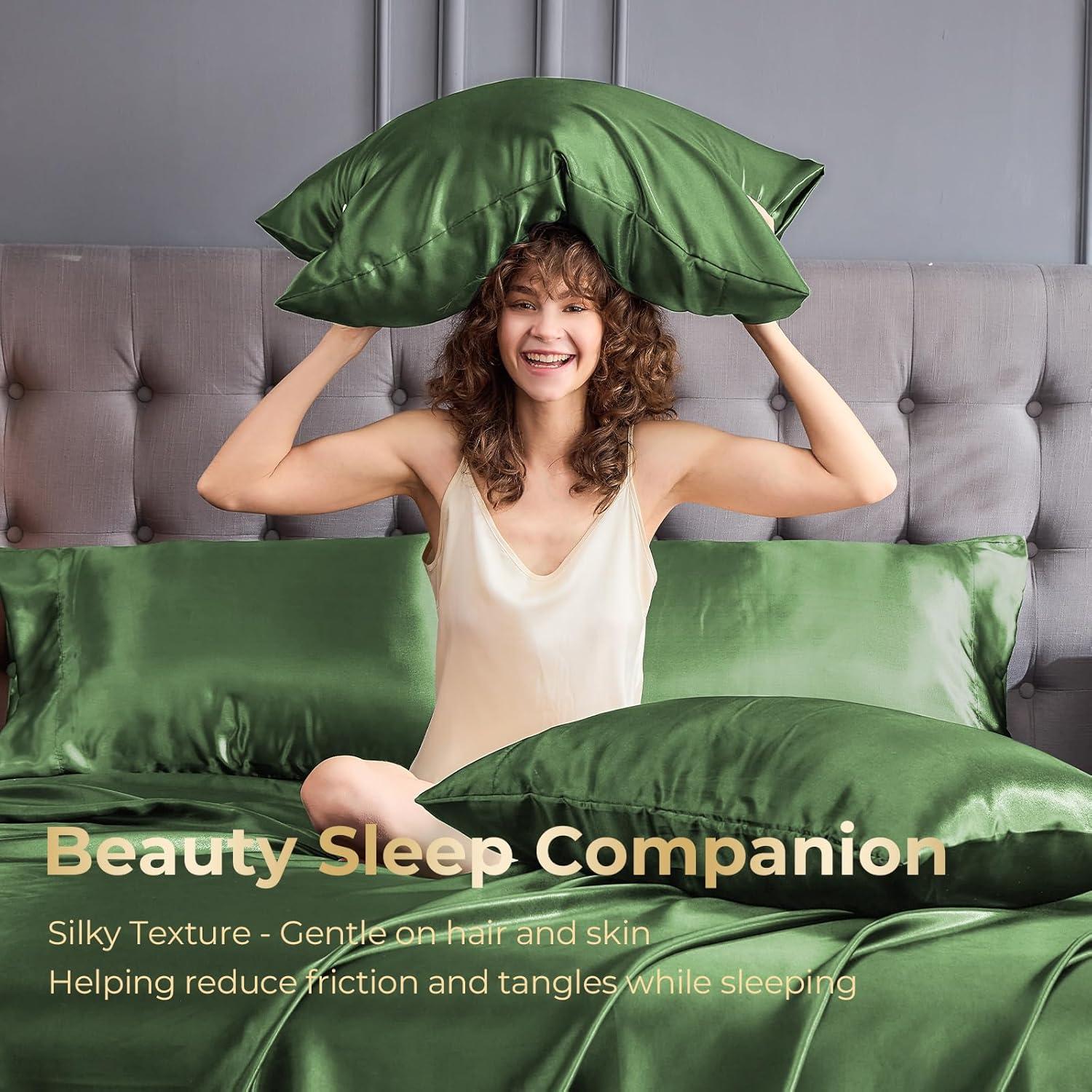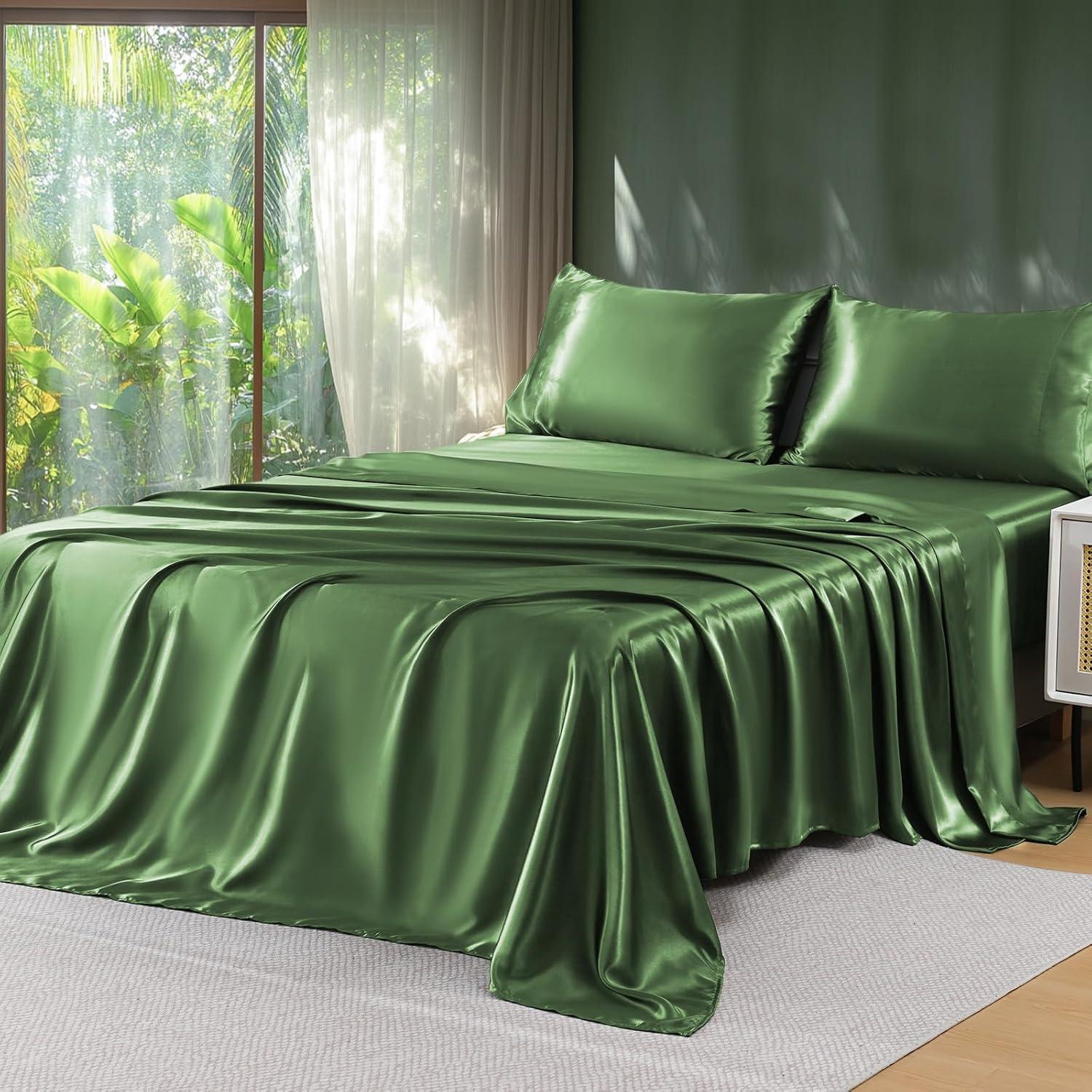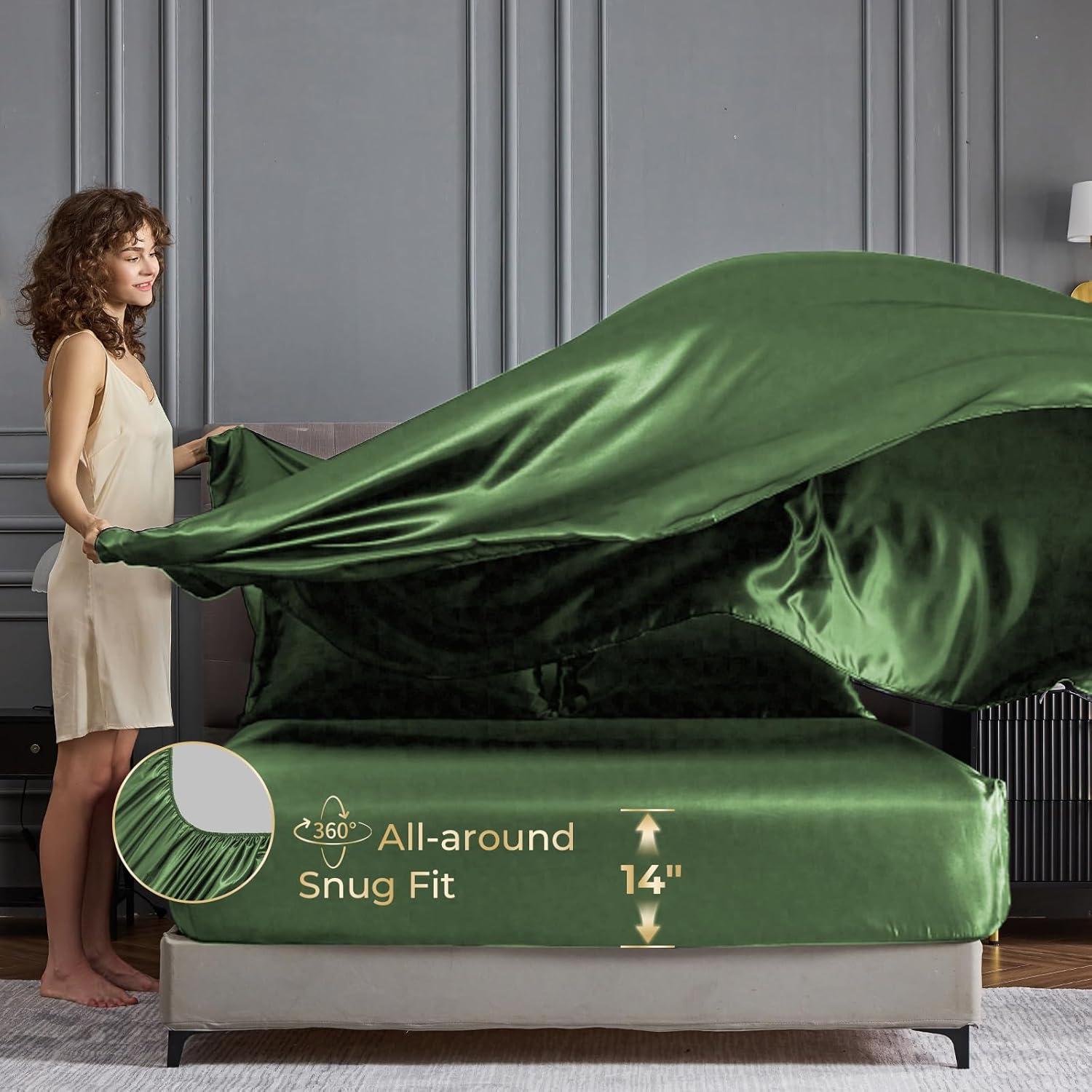 Sasttie Satin Sheets Queen Size – 4 Pieces Luxury Soft Pink Silky Bed Sheets Set with Pillowcases – Smooth Silk-Like Satin Fabric, Reinforced 14 Inches Pocket, Oeko-Tex Certified(Green)
