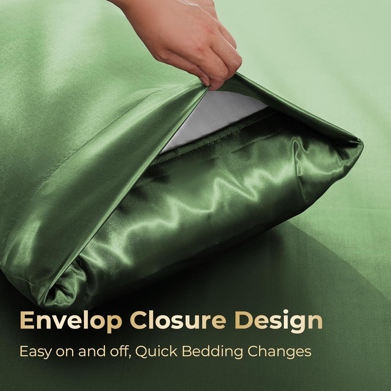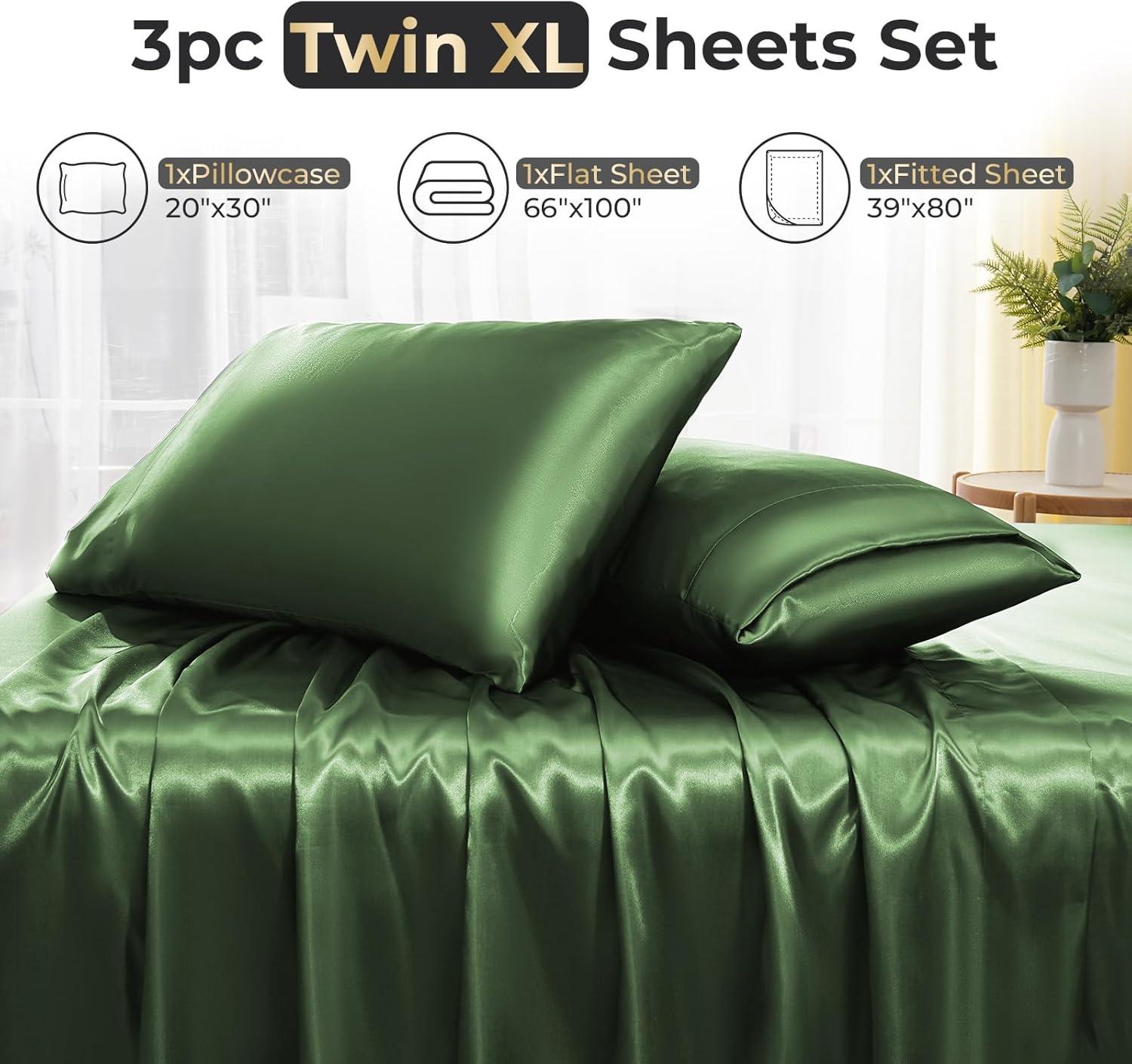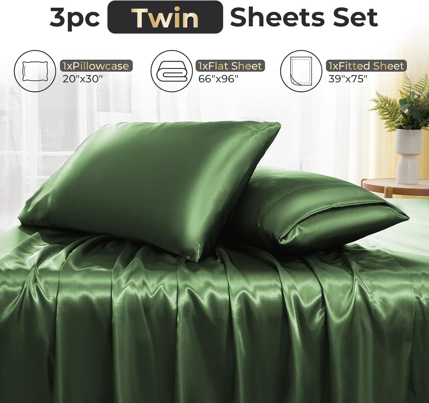 Sasttie Satin Sheets Queen Size – 4 Pieces Luxury Soft Pink Silky Bed Sheets Set with Pillowcases – Smooth Silk-Like Satin Fabric, Reinforced 14 Inches Pocket, Oeko-Tex Certified(Green)