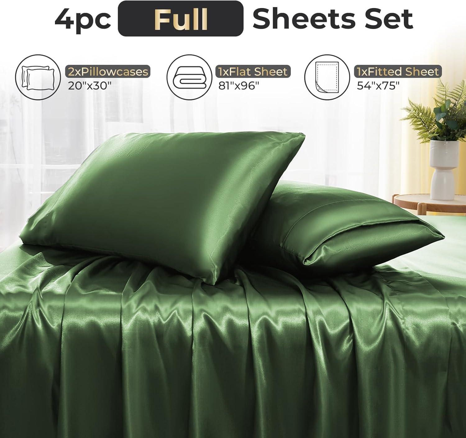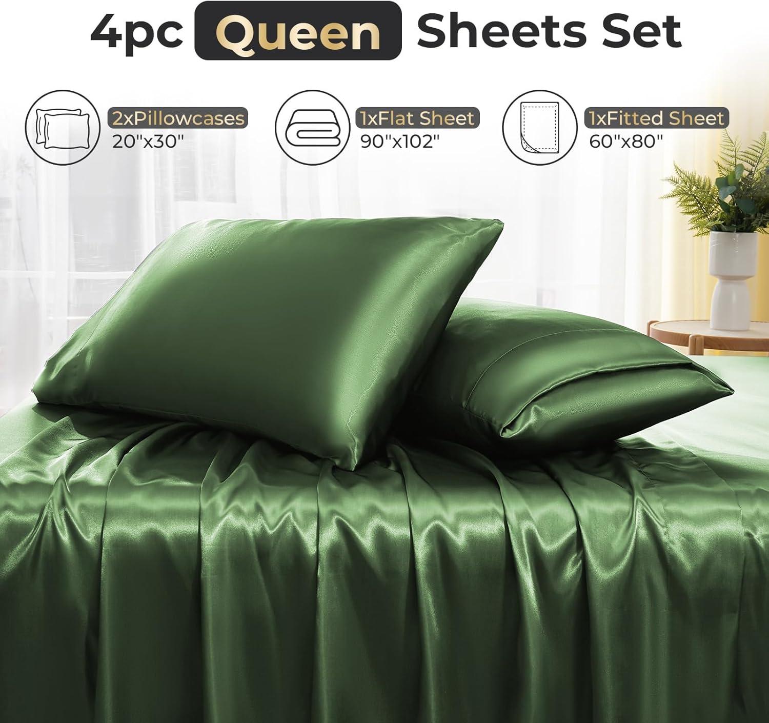 Sasttie Satin Sheets Queen Size - 4 Pieces Luxury Soft Pink Silky Bed Sheets Set with Pillowcases - Smooth Silk-Like Satin Fabric, Reinforced 14 Inches Pocket, Oeko-Tex Certified(Green)