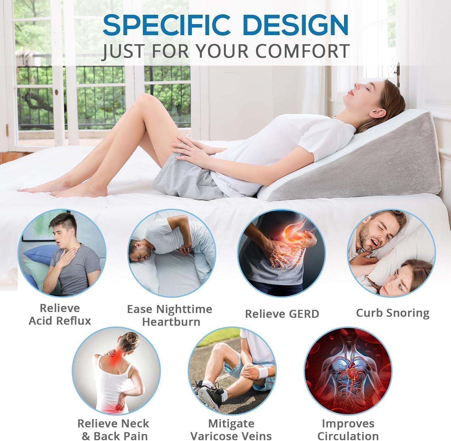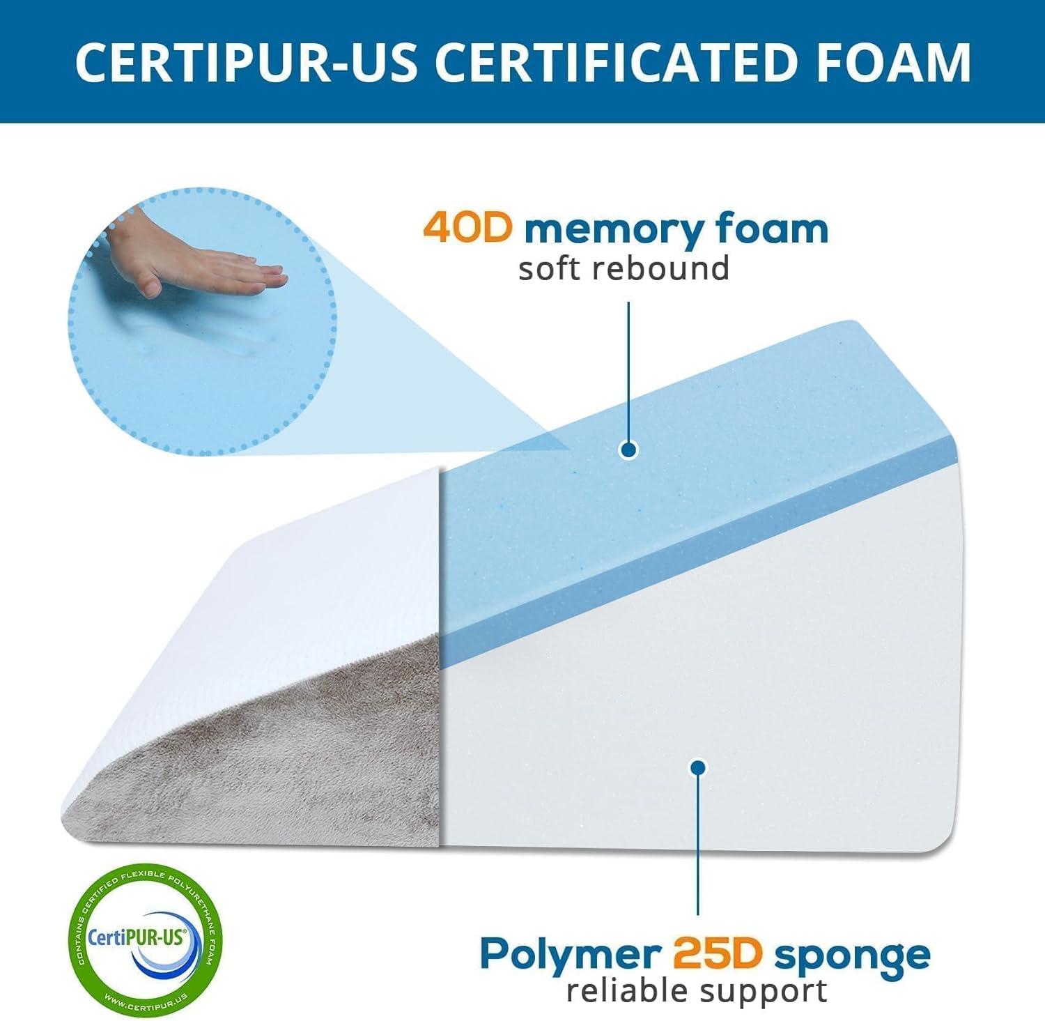 Premium Material: Our wedge pillow for back pain relief features a 25D foam base for lasting support, topped with 40D slow-rebound memory foam that adjusts to your body's temperature, providing a 3-5 second rebound to relieve pressure effectively