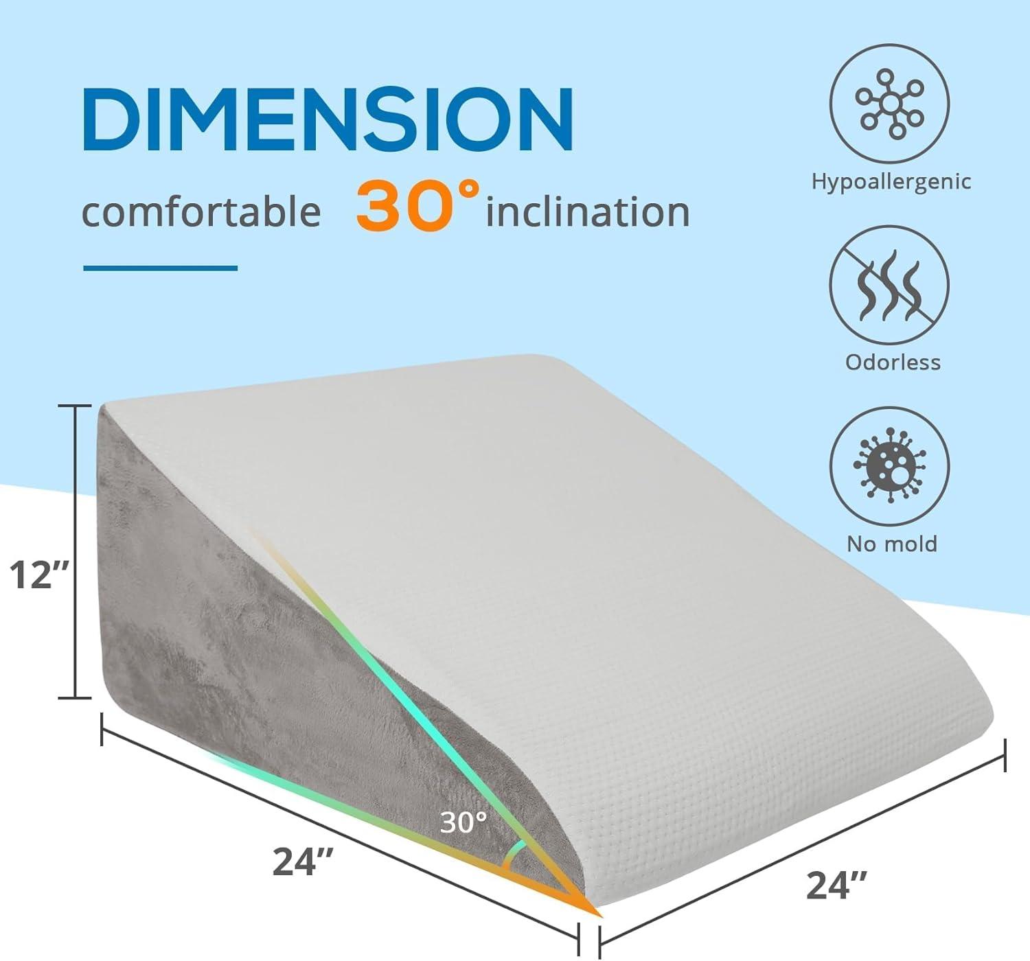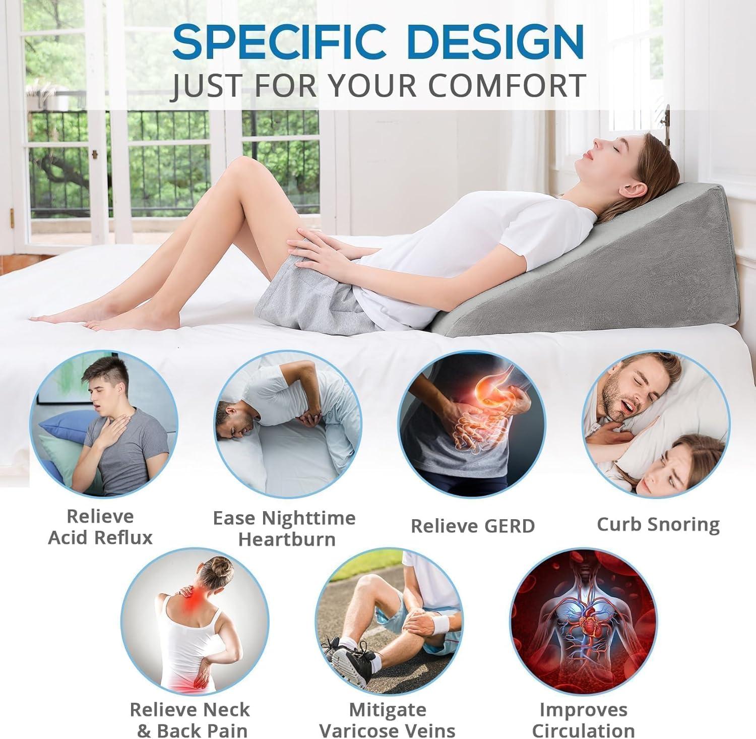 Premium Material: Our wedge pillow for back pain relief features a 25D foam base for lasting support, topped with 40D slow-rebound memory foam that adjusts to your body's temperature, providing a 3-5 second rebound to relieve pressure effectively