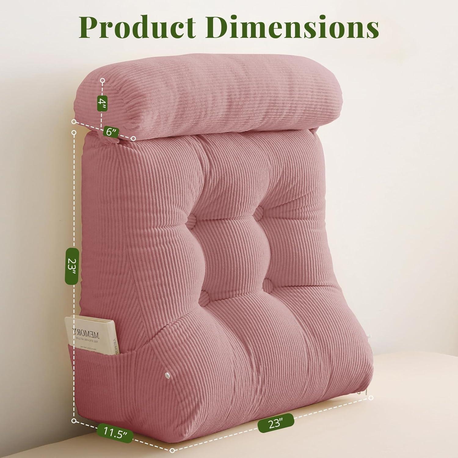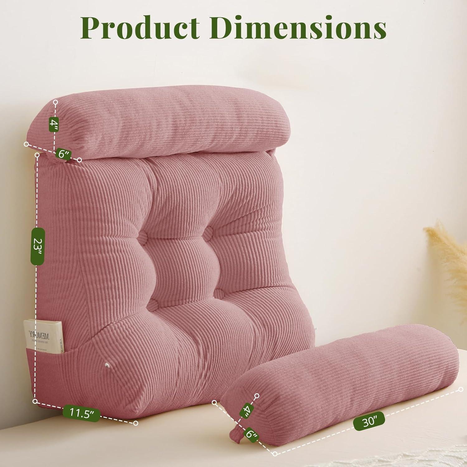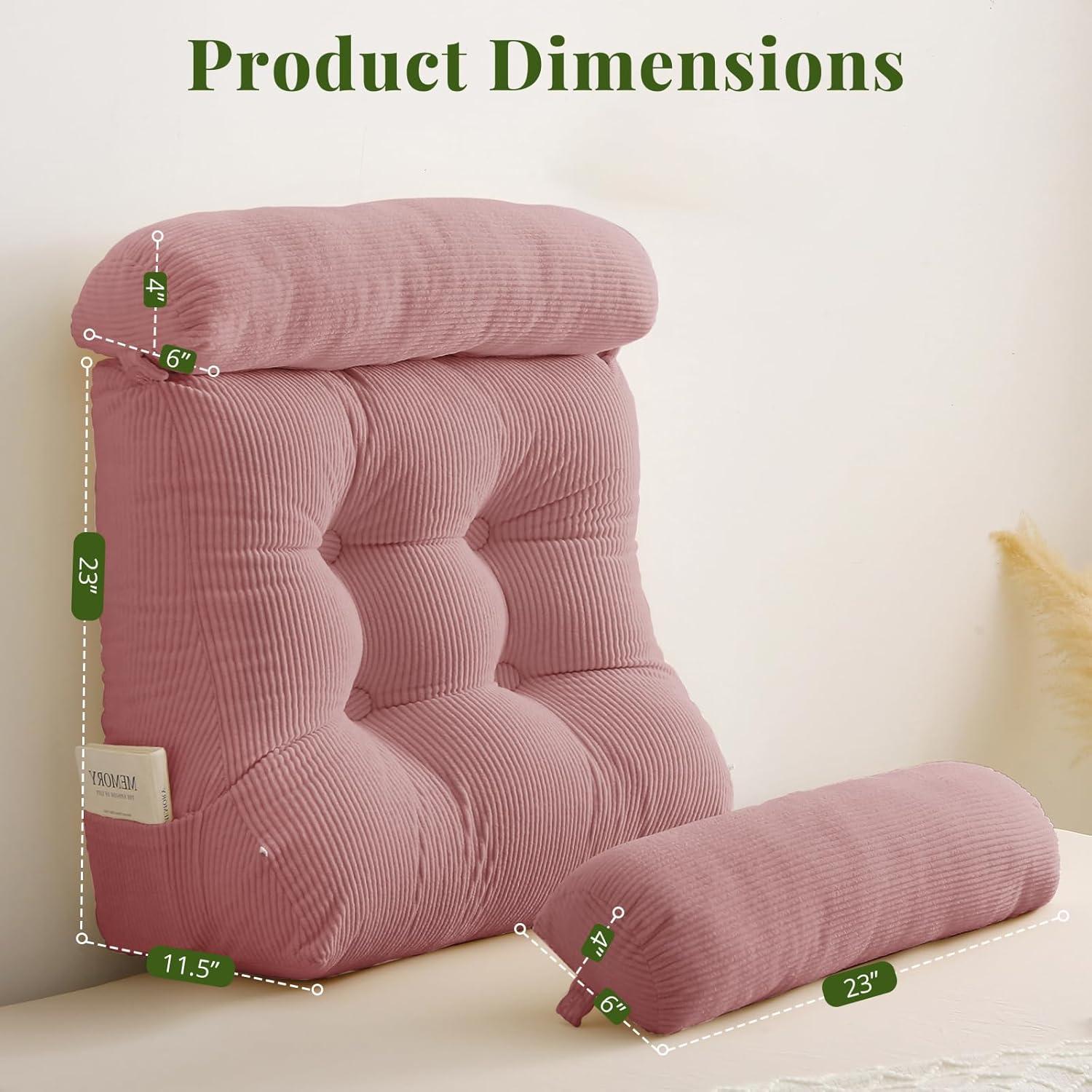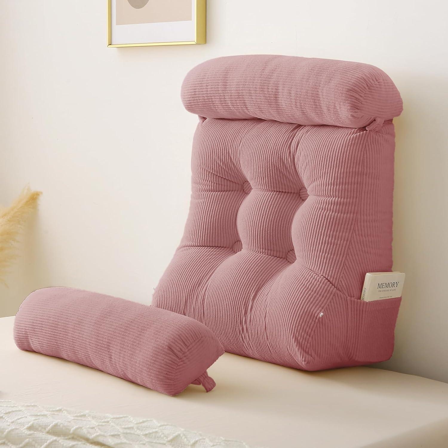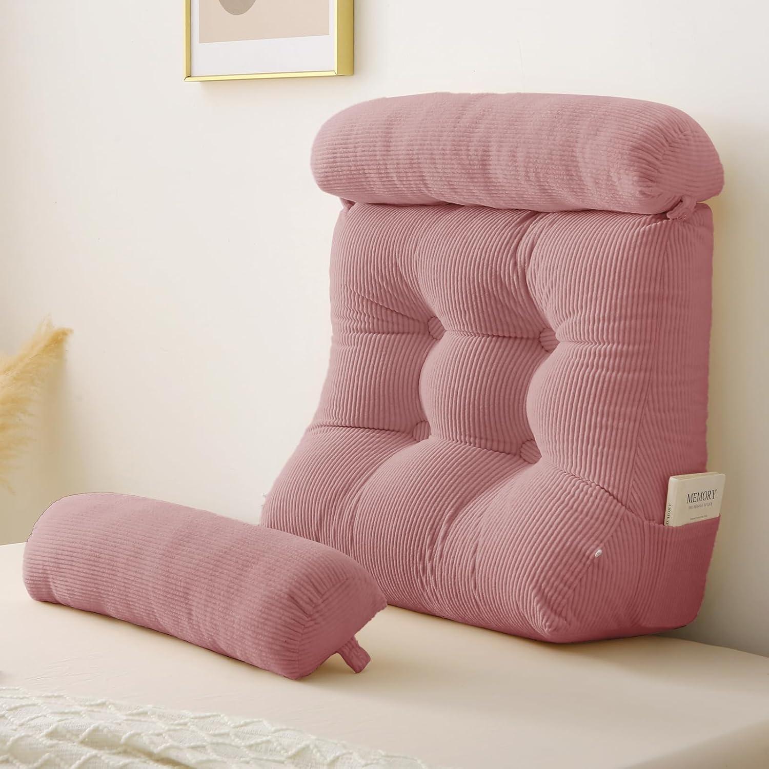 Sasttie Wedge Pillow Set, 2PCS Reading Pillow for Sitting, Bed Wedge Pillow Headborad for Sleeping, After Surgery, Acid Reflux, Leg and Back Support, with Neck Cushion, 23"x11.5"x23", Dark Grey(Pink)