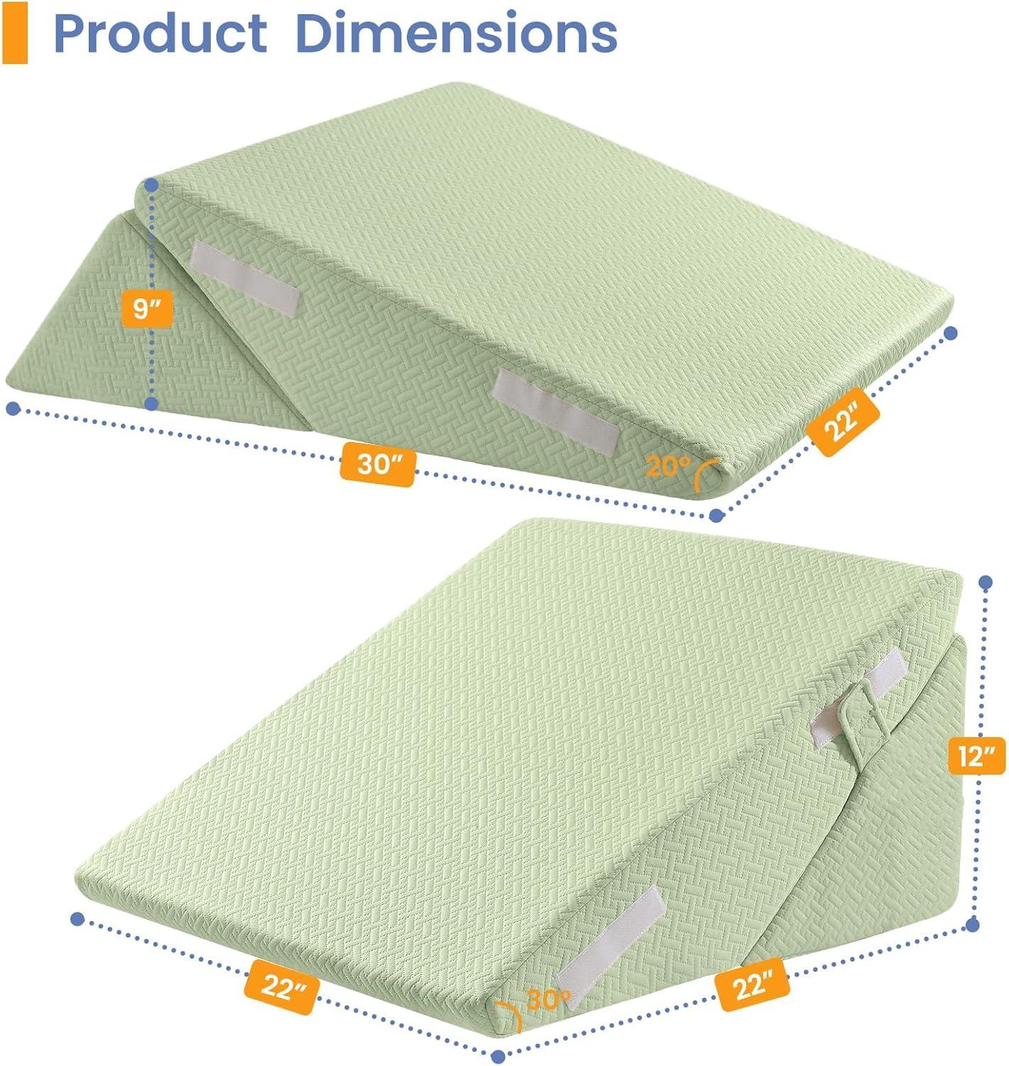 Sasttie Wedge Pillow Set for After Surgery, 3PCS Adjustable Bed Wedge Pillow Headboard with Memory Foam Neck Cushion – for Acid Reflux, Sleeping, Neck & Back Support, Dark Grey & White(Sage)