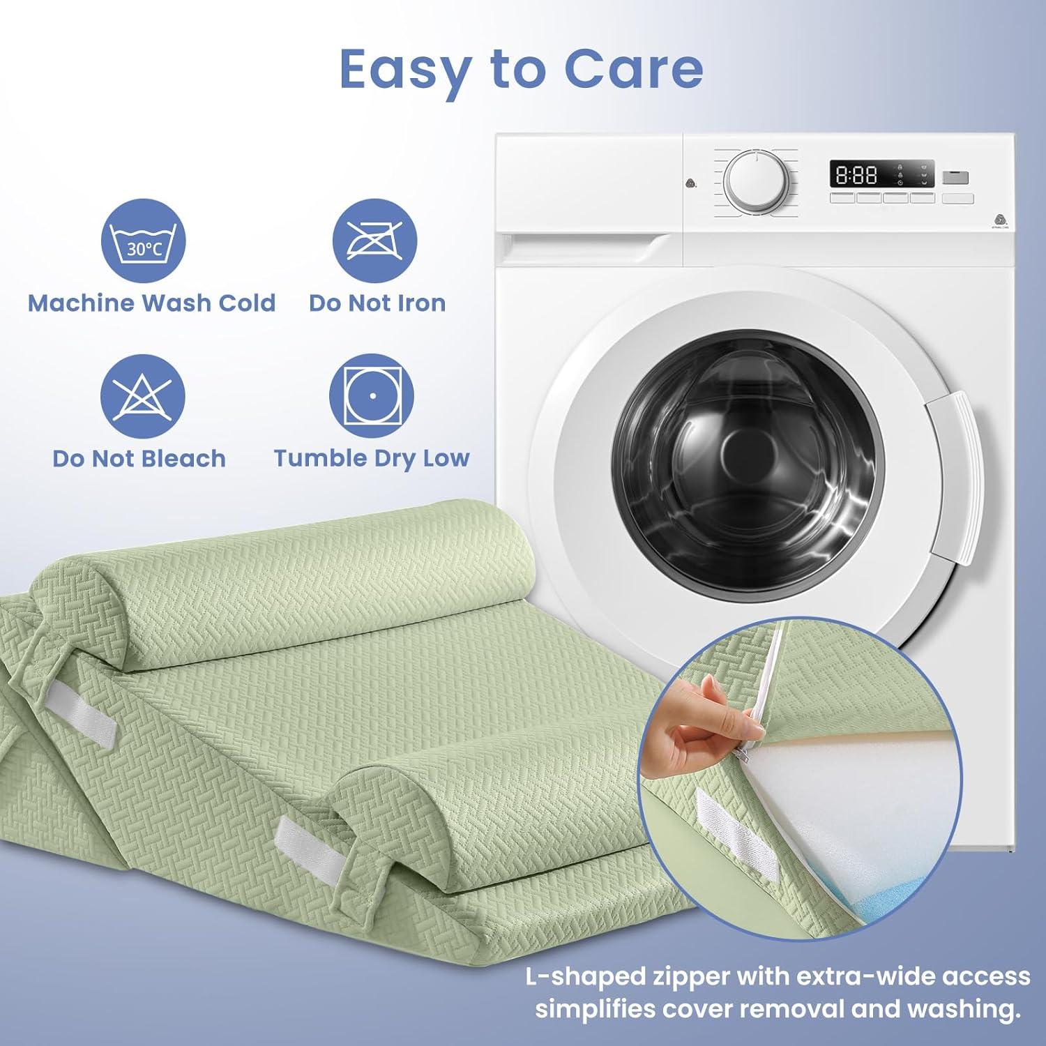All in Details: Crafted from breathable air layer fabric, the bed wedge cover delivers an airy, cozy feel. Its L-shaped zip closure allows easy removal for machine washing, while handy pockets provide quick-access storage