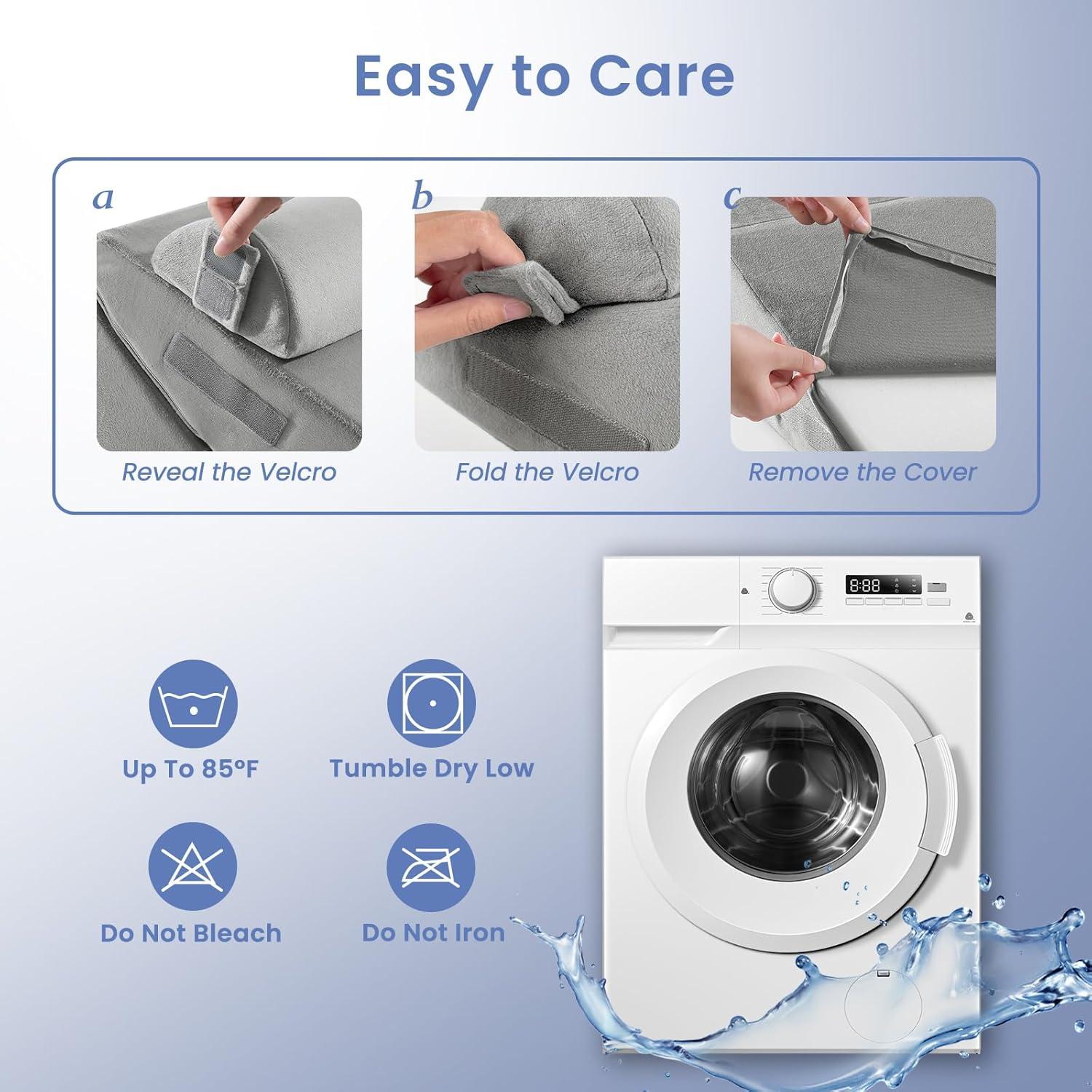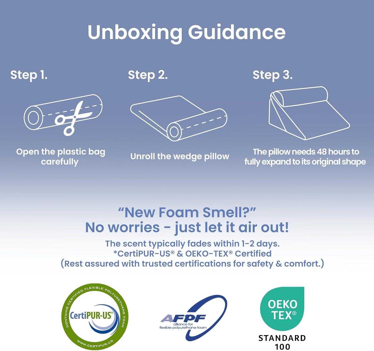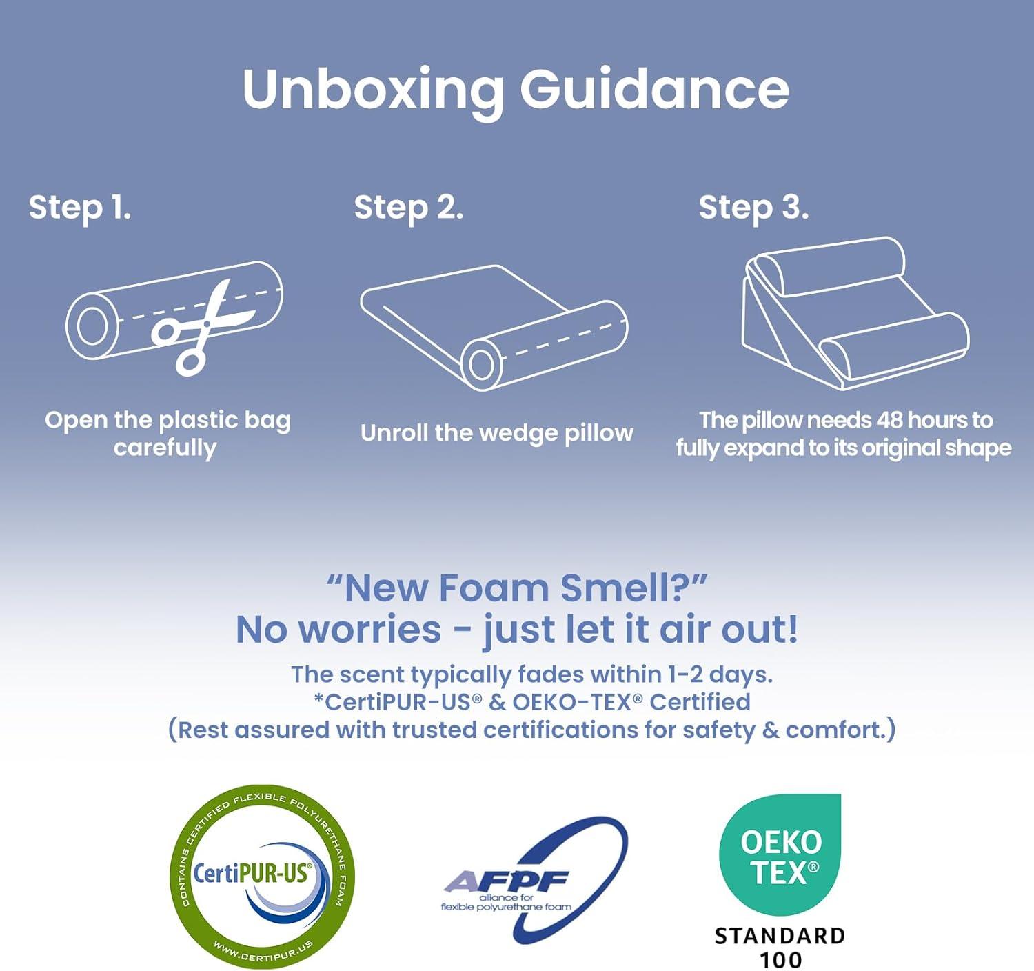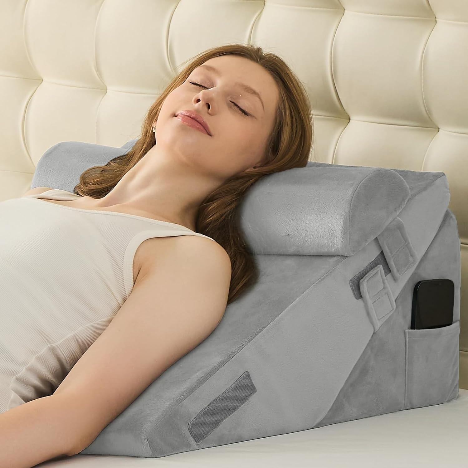 Multifunctional Wedge Pillow: This wedge pillow for sleeping helps reduce acid reflux, snoring, and heartburn through improved breathing and circulation. The pillow wedge also helps ease back, neck, and leg pressure, ideal for post-surgery recovery